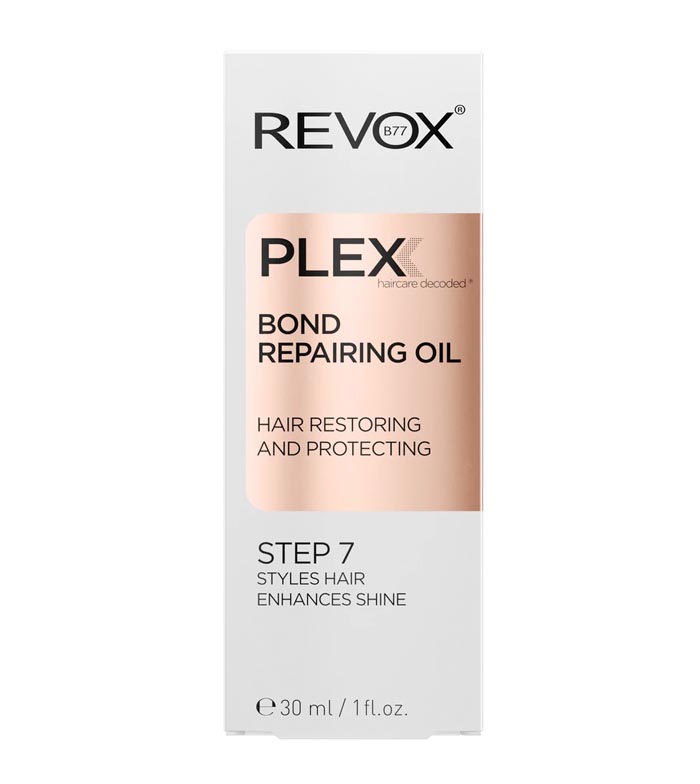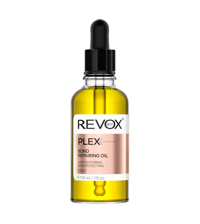 El aceite reparador Plex Bond Step 7 es el séptimo paso de la línea de reparación del cabello de Revox.