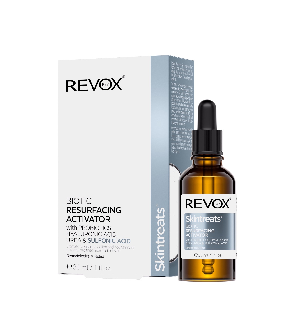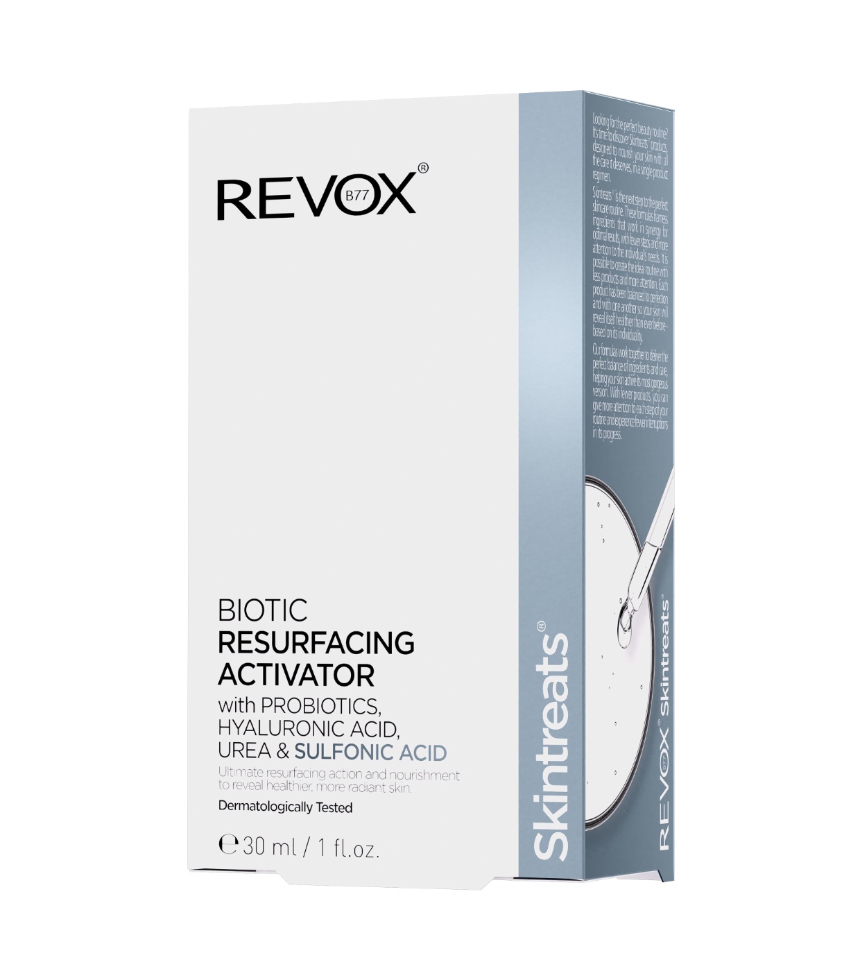 Sérum exfoliante restaurador Biotic Resourfacing Activator de la gama Skintreats de Revox.