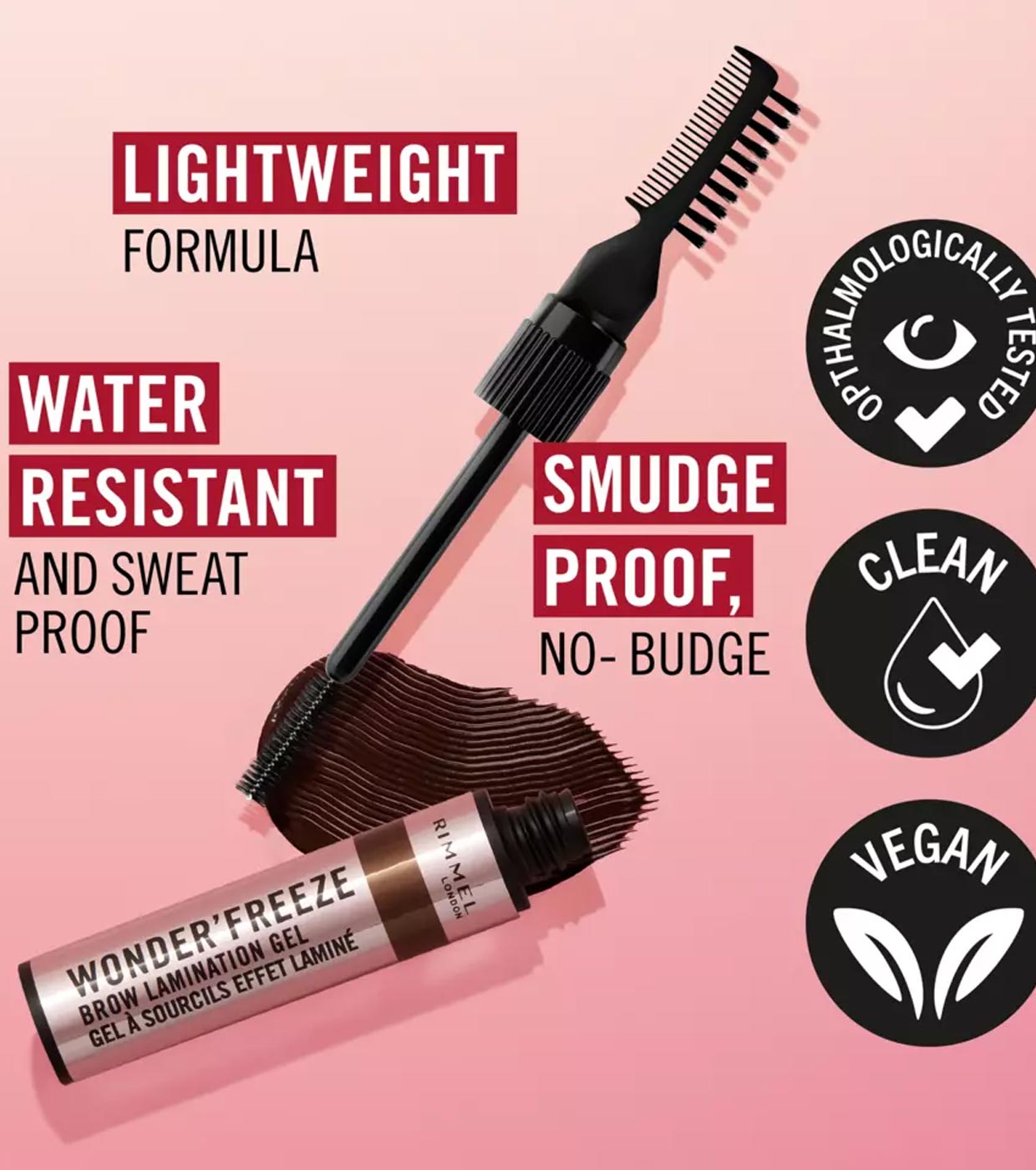 Doma, peina y fija tus cejas, ¡todo en uno con el Gel para Laminar Cejas Wonder'Freeze de Rimmel!