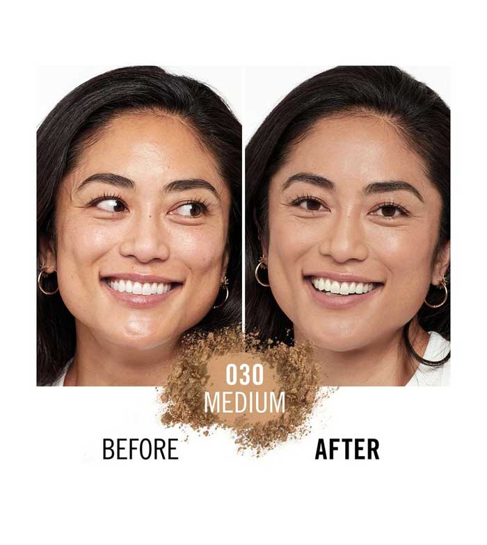 De larga duración, no se apelmaza y controla la aparición de brillos.
