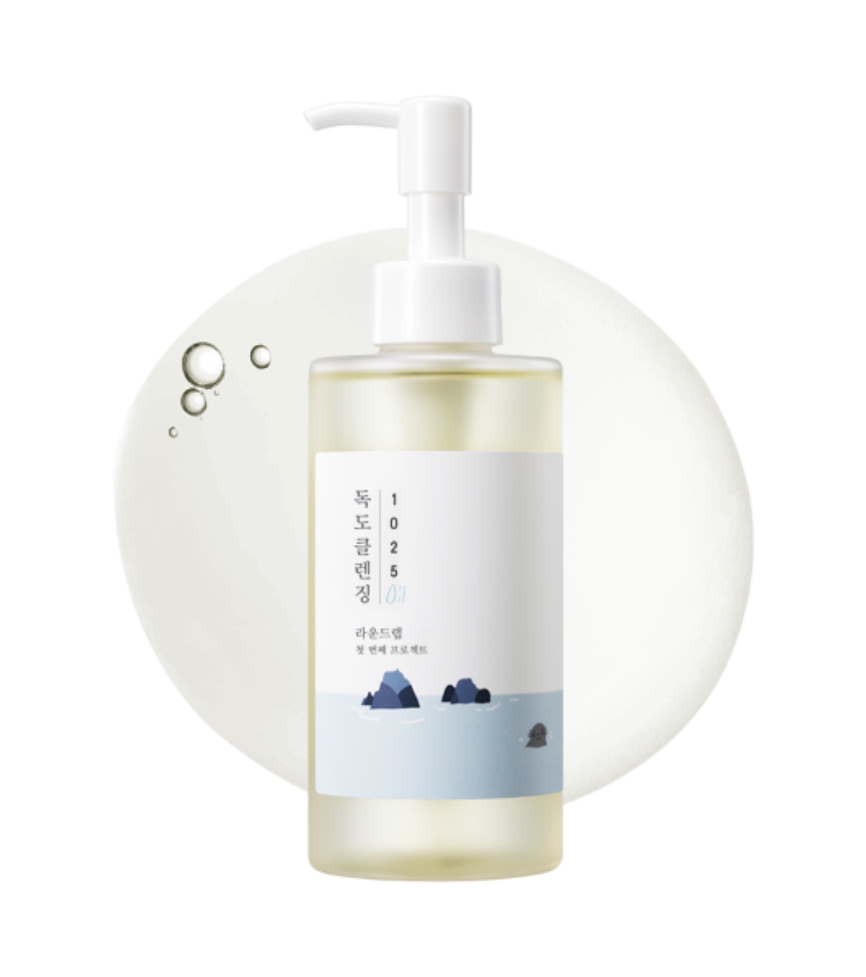 El aceite Limpiador 1025 Dokdo de Round Lab, es un aceite limpiador ligero que ayuda a eliminar el maquillaje, el sebo, los puntos negros, el polvo fino y la suciedad para una limpieza profunda y una carga de hidratación.