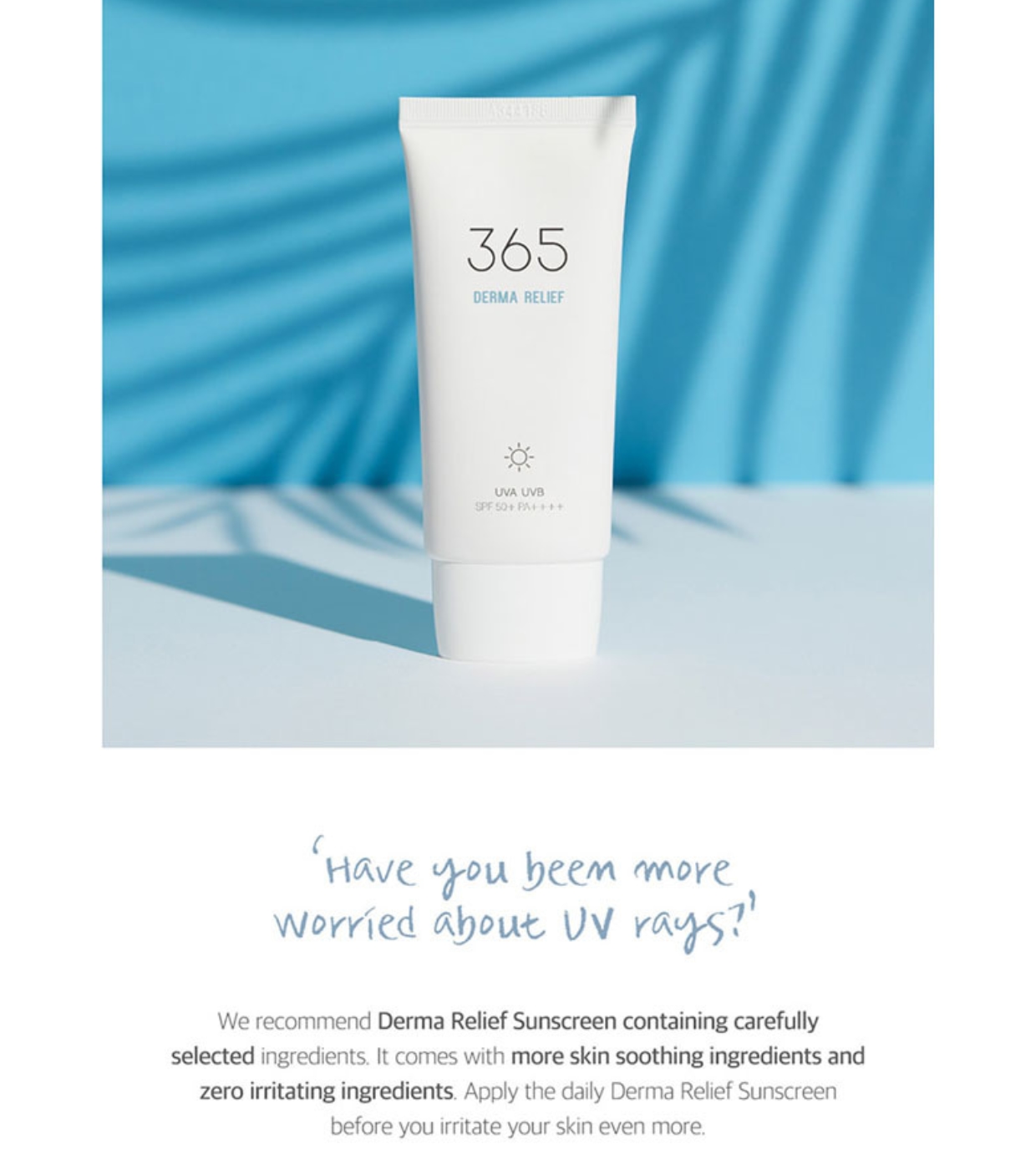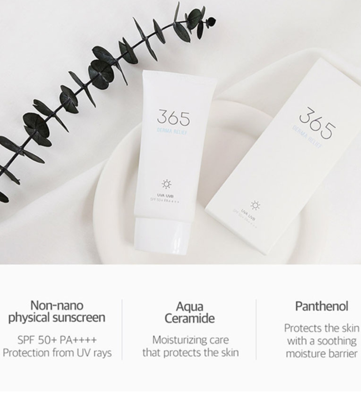 La crema solar 365 Derma Relief SPF 50+ PA+++ de Round Lab es un protector solar de base mineral diseñado para proteger la piel de los rayos UVA y UVB.