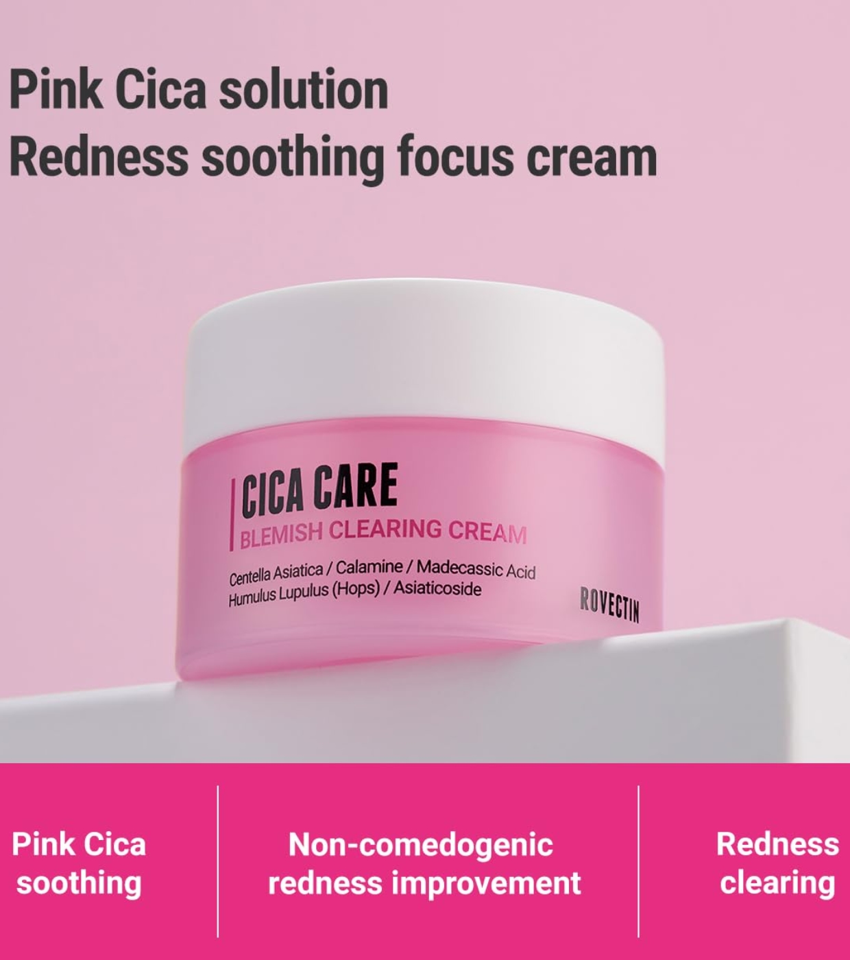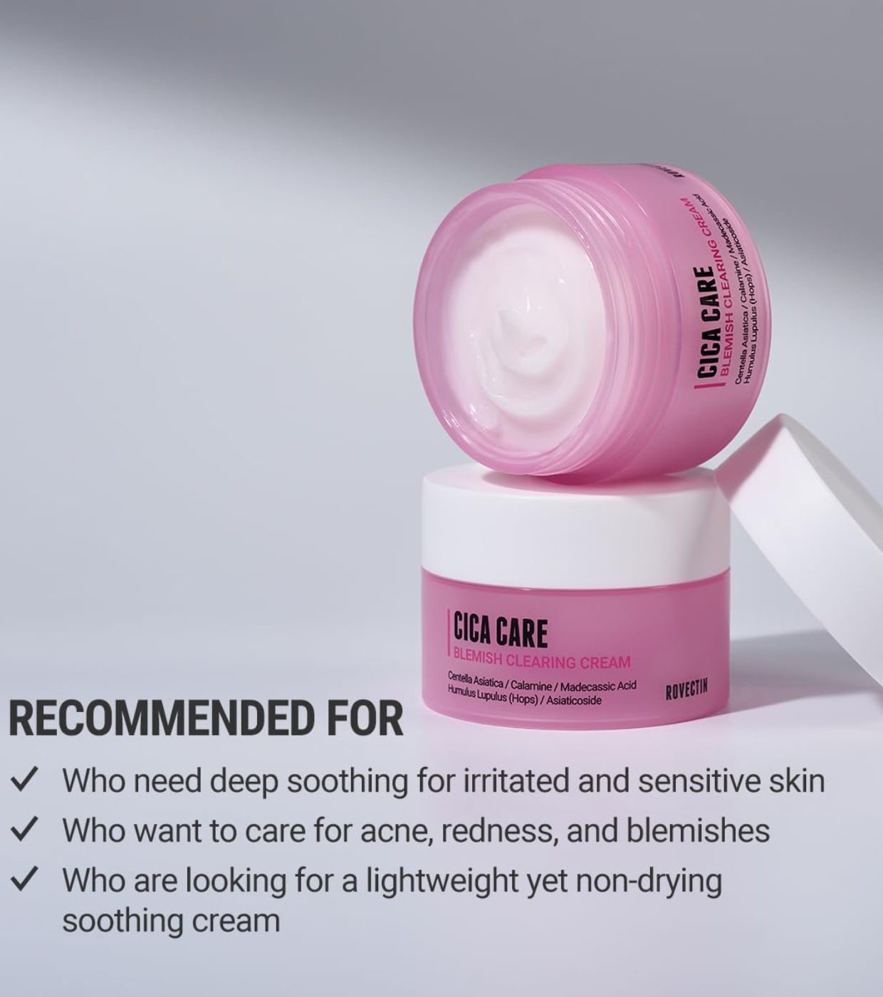 La Cica Care Blemish Clearing Cream de Rovectin es una crema facial calmante diseñada para pieles sensibles, irritadas o con tendencia acneica.