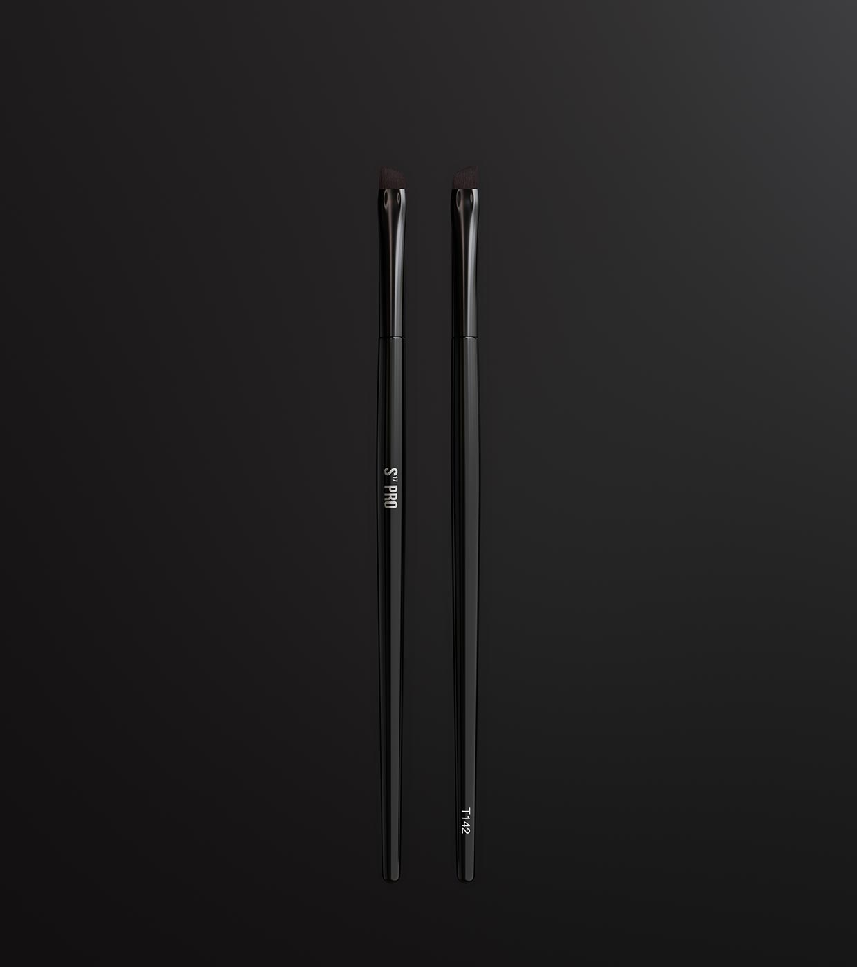 Domina el arte del detalle con la brocha T142 de S17PRO, diseñada para lograr trazos cortos, precisos y difuminados con control absoluto. Su forma angular y su densidad equilibrada permiten definir líneas, suavizar bordes y trabajar detalles en ojos o cejas con total facilidad.