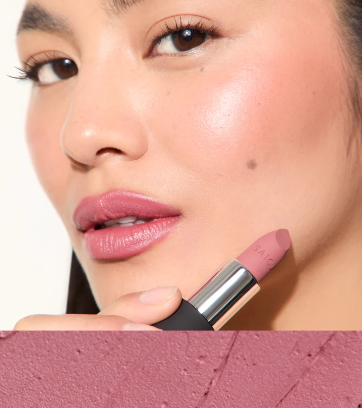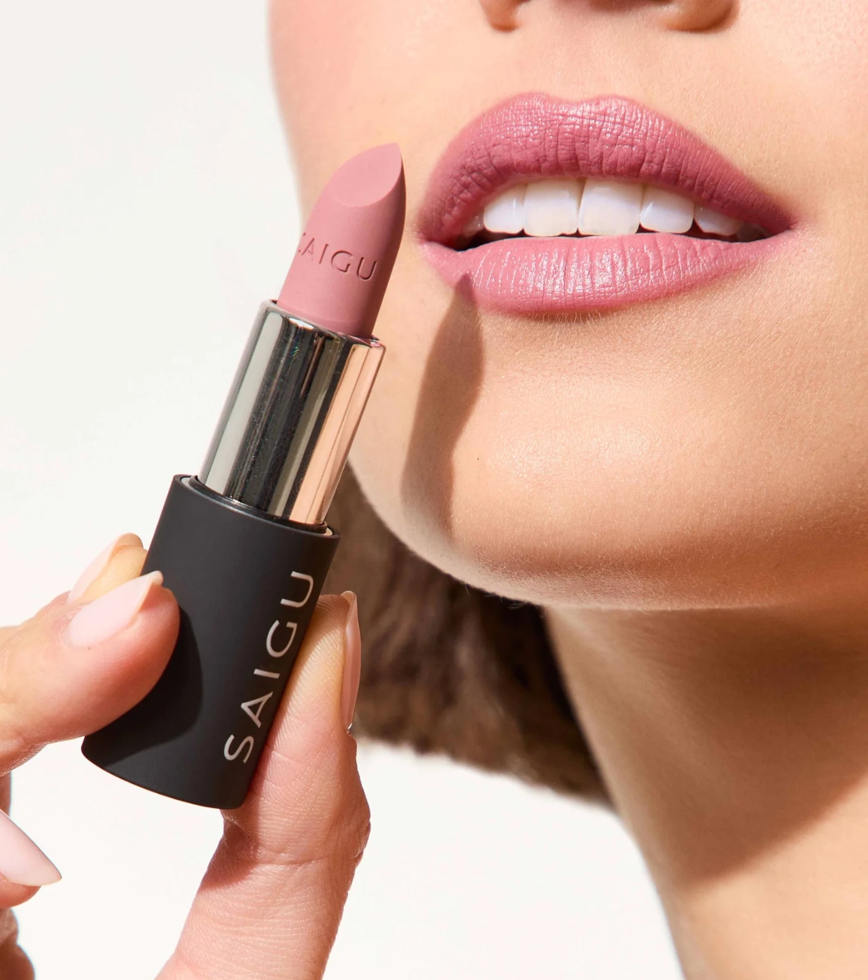 Barra de labios con textura velvet de Saigu Cosmetics.