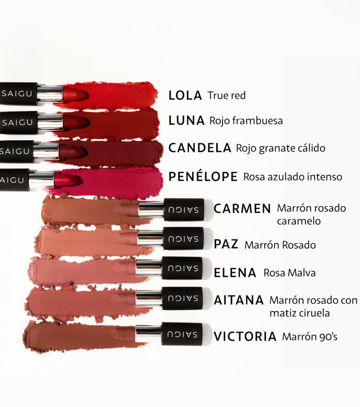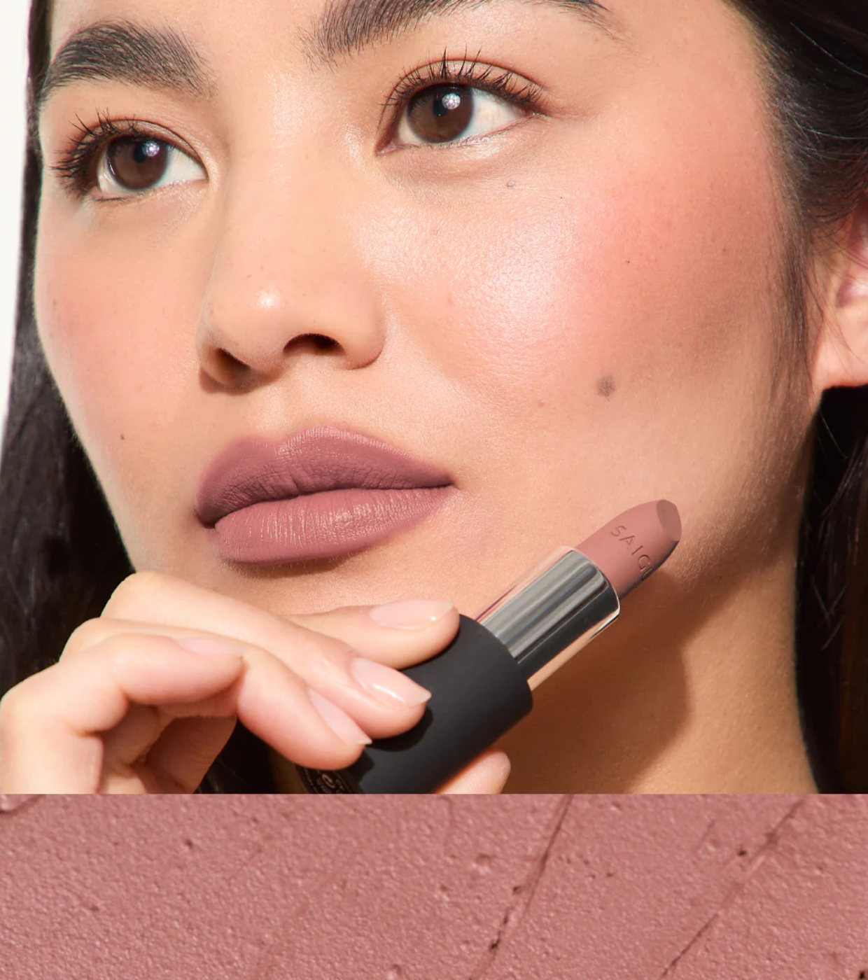 Barra de labios con textura velvet de Saigu Cosmetics.