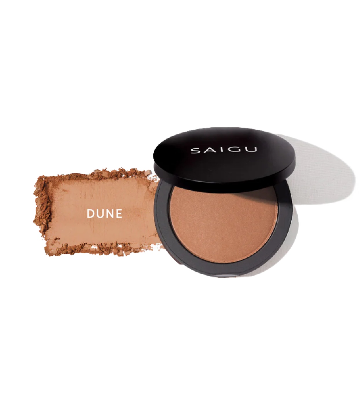 Descubre el bronceador en polvo de Saigu Cosmetics que ofrece una textura fina y sedosa, fácil de aplicar e integrar para un acabado perfecto.