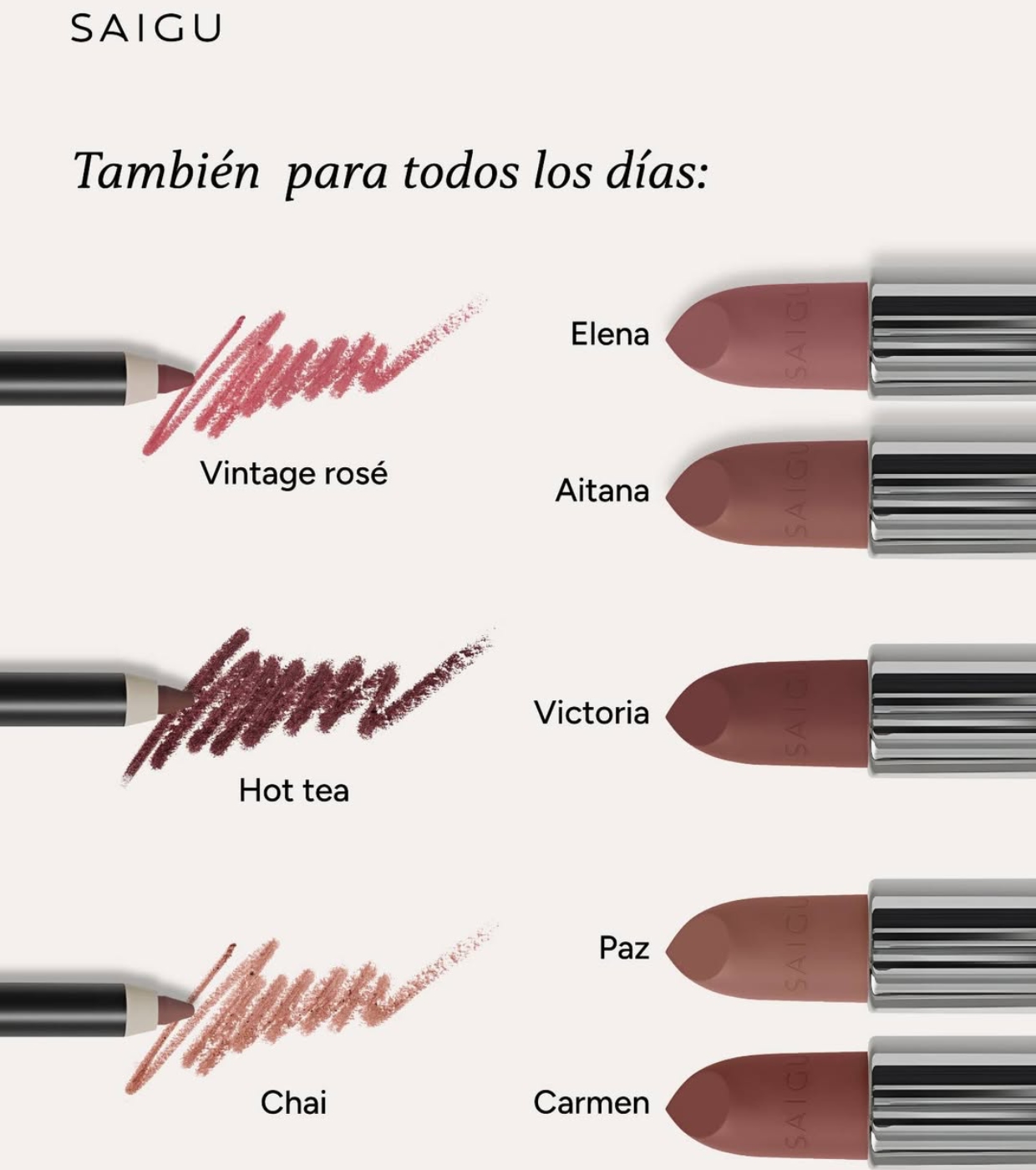 Complementa a la perfección los pintalabios Velvet y Melting Glow de SAIGU, creando combinaciones armoniosas y personalizadas.