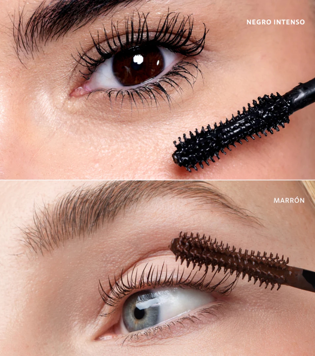 Su cepillo ergonómico separa cada pestaña con precisión, mientras que la fórmula cremosa se adapta al movimiento sin apelmazar.