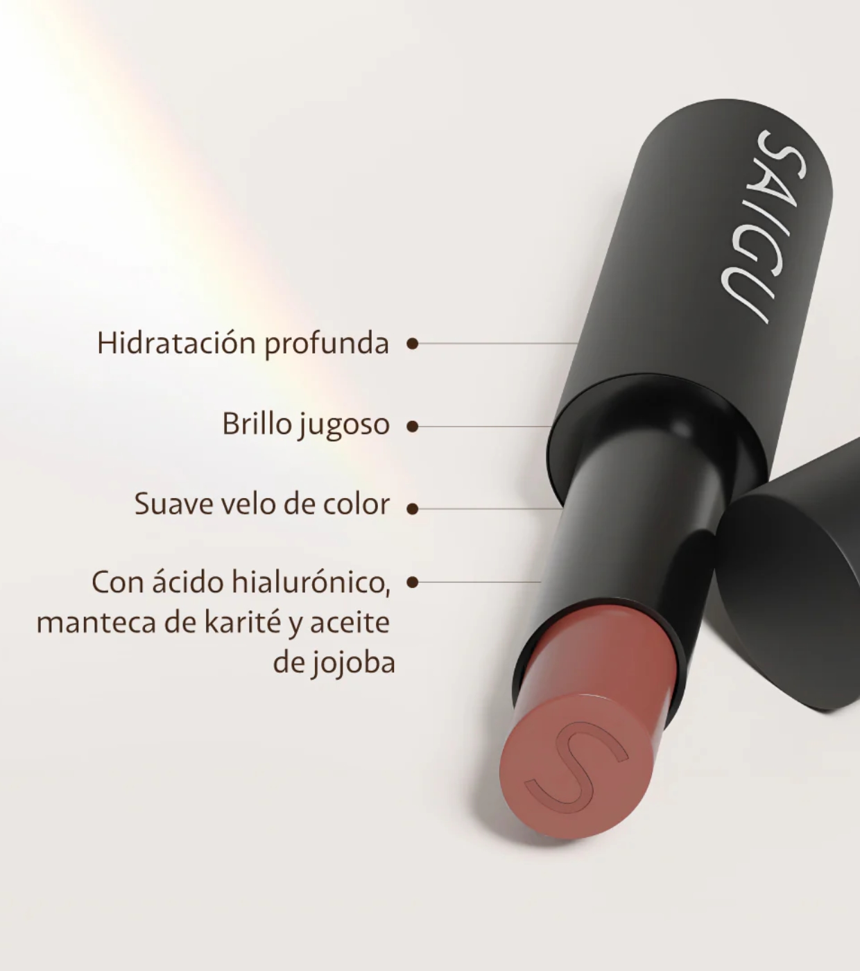 El pintalabios Melting Glow de Saigu Cosmetics en el tono SELINE es esa combinación perfecta entre cuidado labial y color favorecedor.