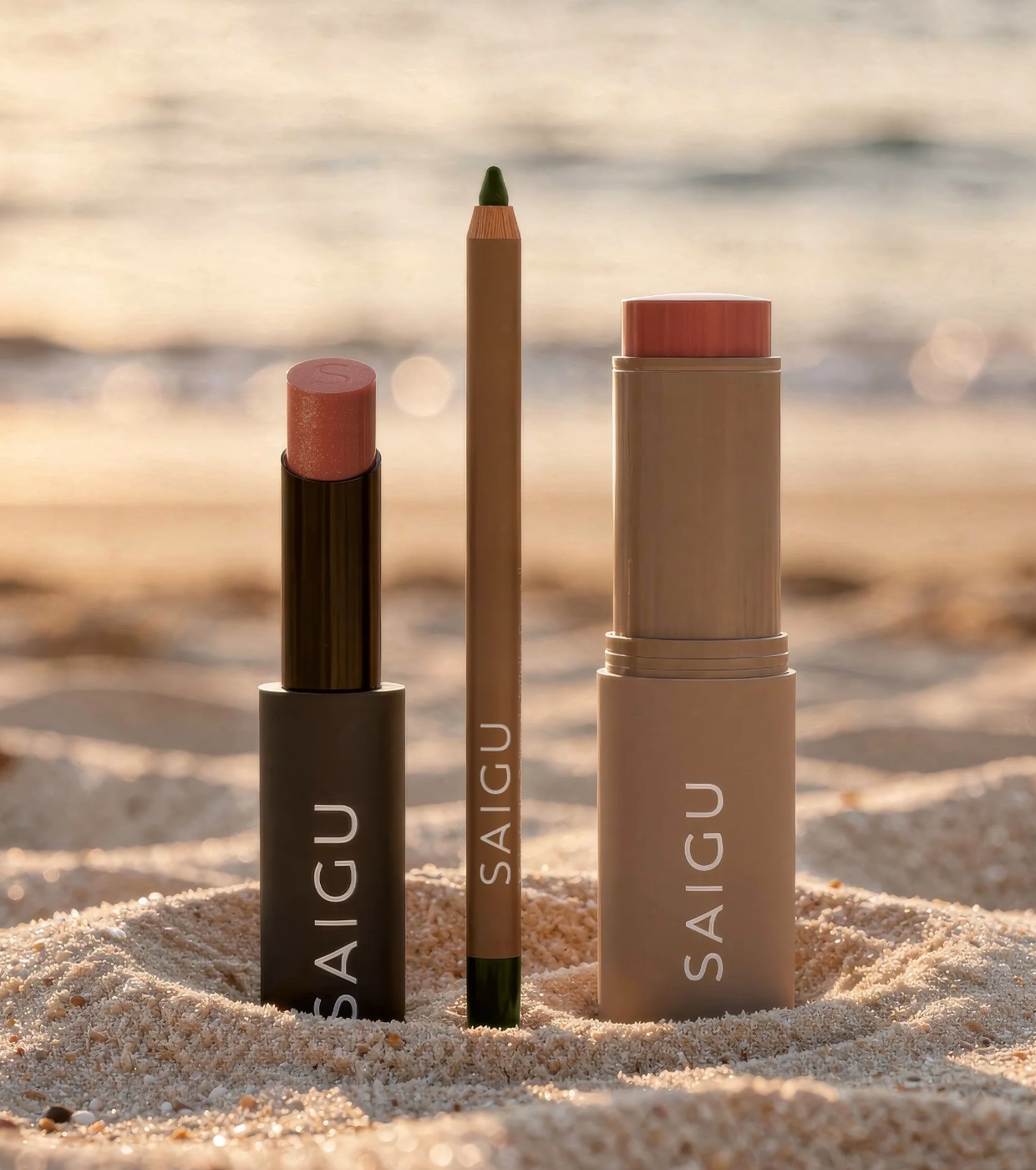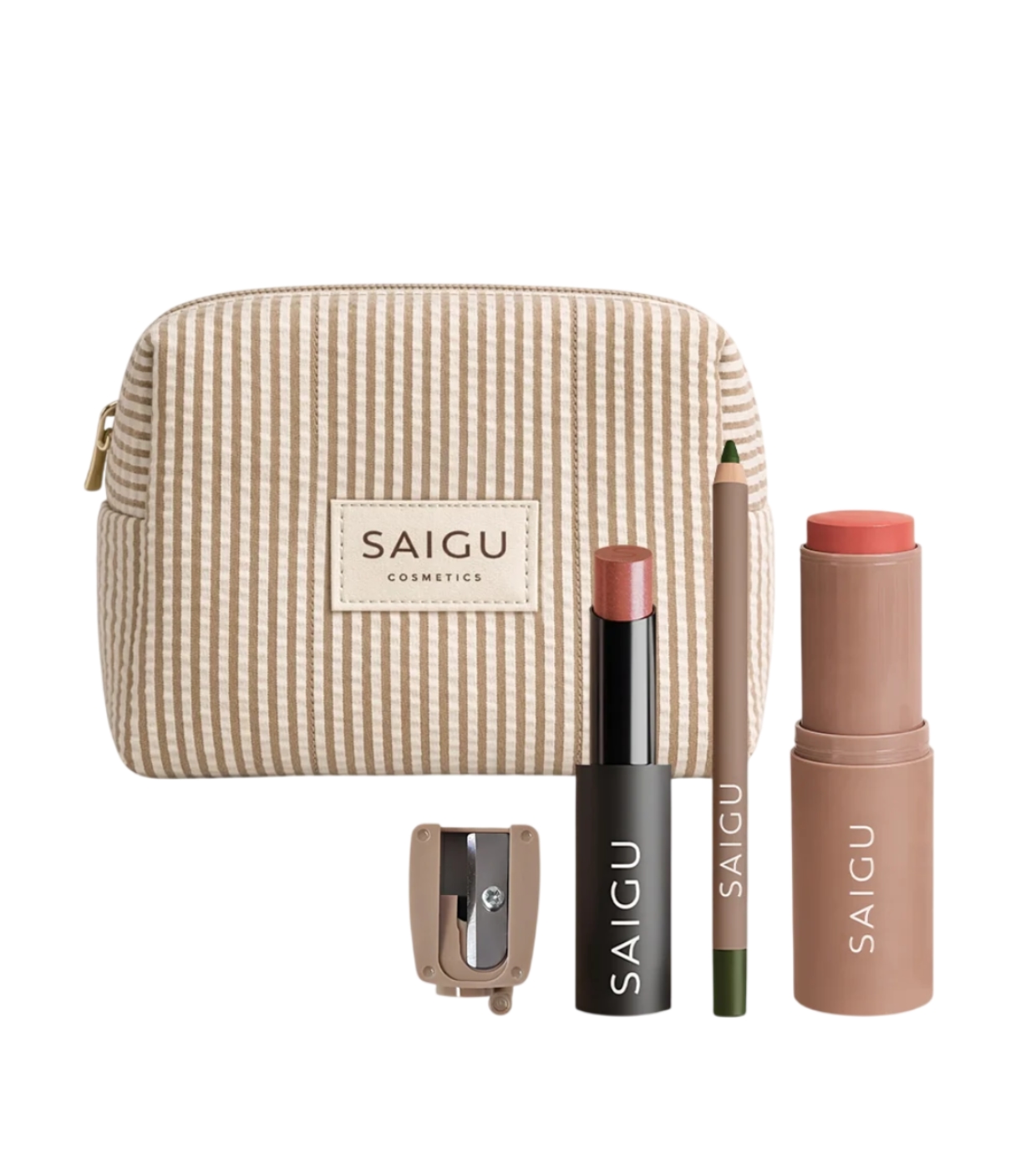 Consigue un look fresco y luminoso con un acabado natural que realza la piel con un sutil toque de color y luz, evocando el efecto de un rostro bañado por el sol con este set Sunset Glow de Saigu Cosmetics.