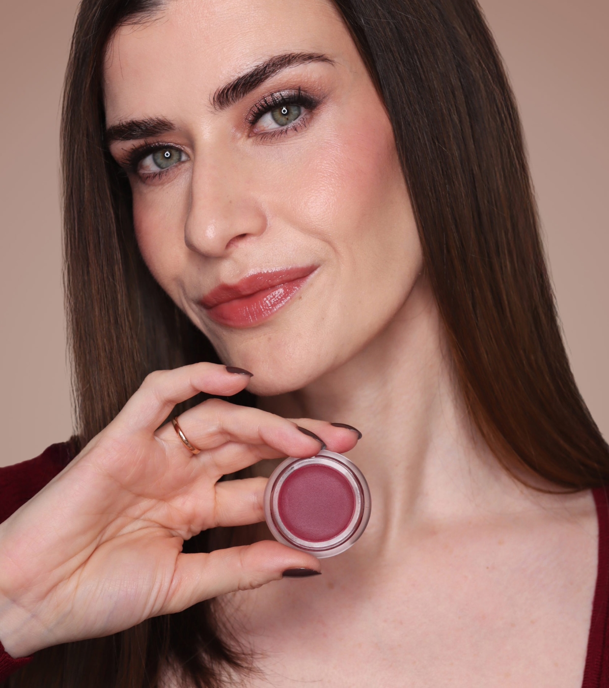 Vin es un borgoña cereza de subtono frío, elegante y atemporal. Su acabado en crema deja un rubor sutil, sofisticado y con carácter, al estilo de la belleza clásica de Audrey.