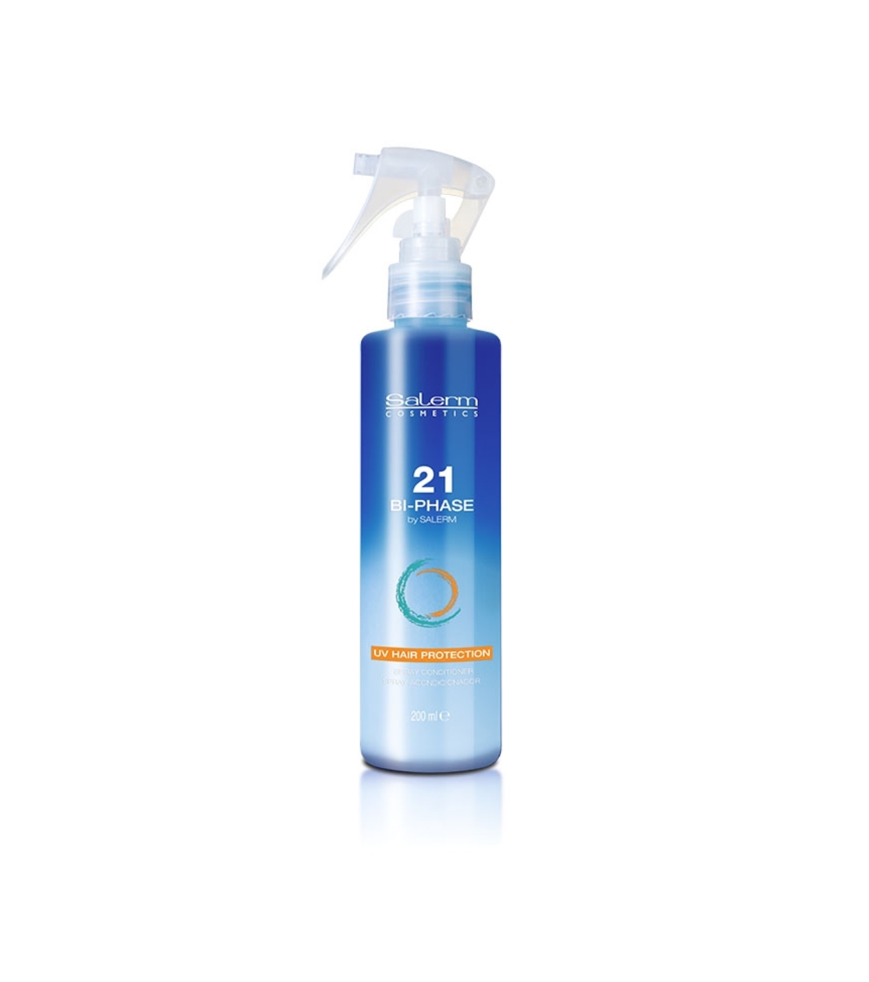 El Salerm 21 Spray acondicionador protector solar de Salerm es un acondicionador bifásico en spray diseñado para proteger tu cabello frente a agresiones externas como el sol, el cloro y el salitre, al mismo tiempo que repara, desenreda y elimina el encrespamiento.