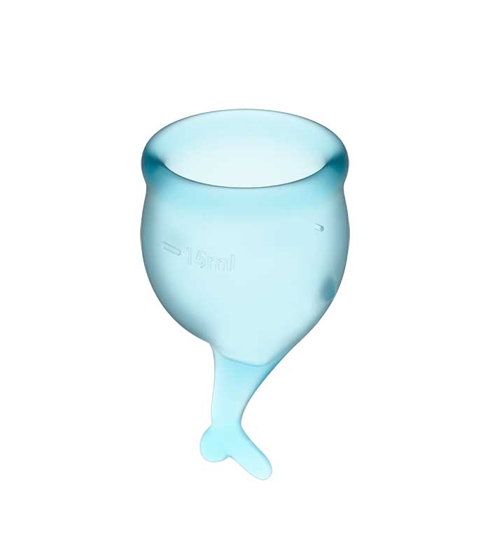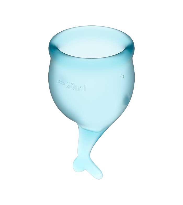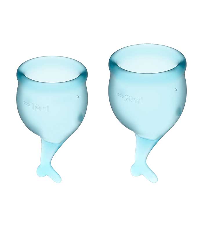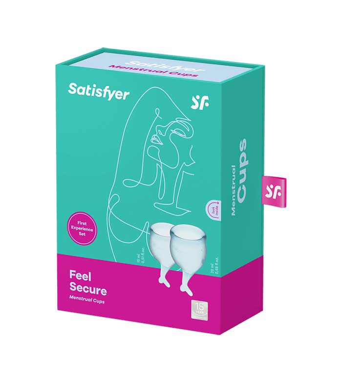 Kit de copas menstruales Feel Secure de Satisfyer en color azul claro.