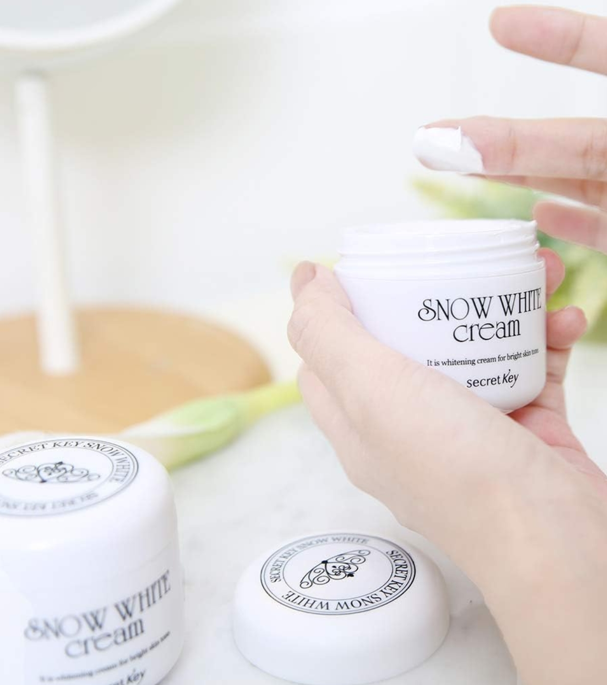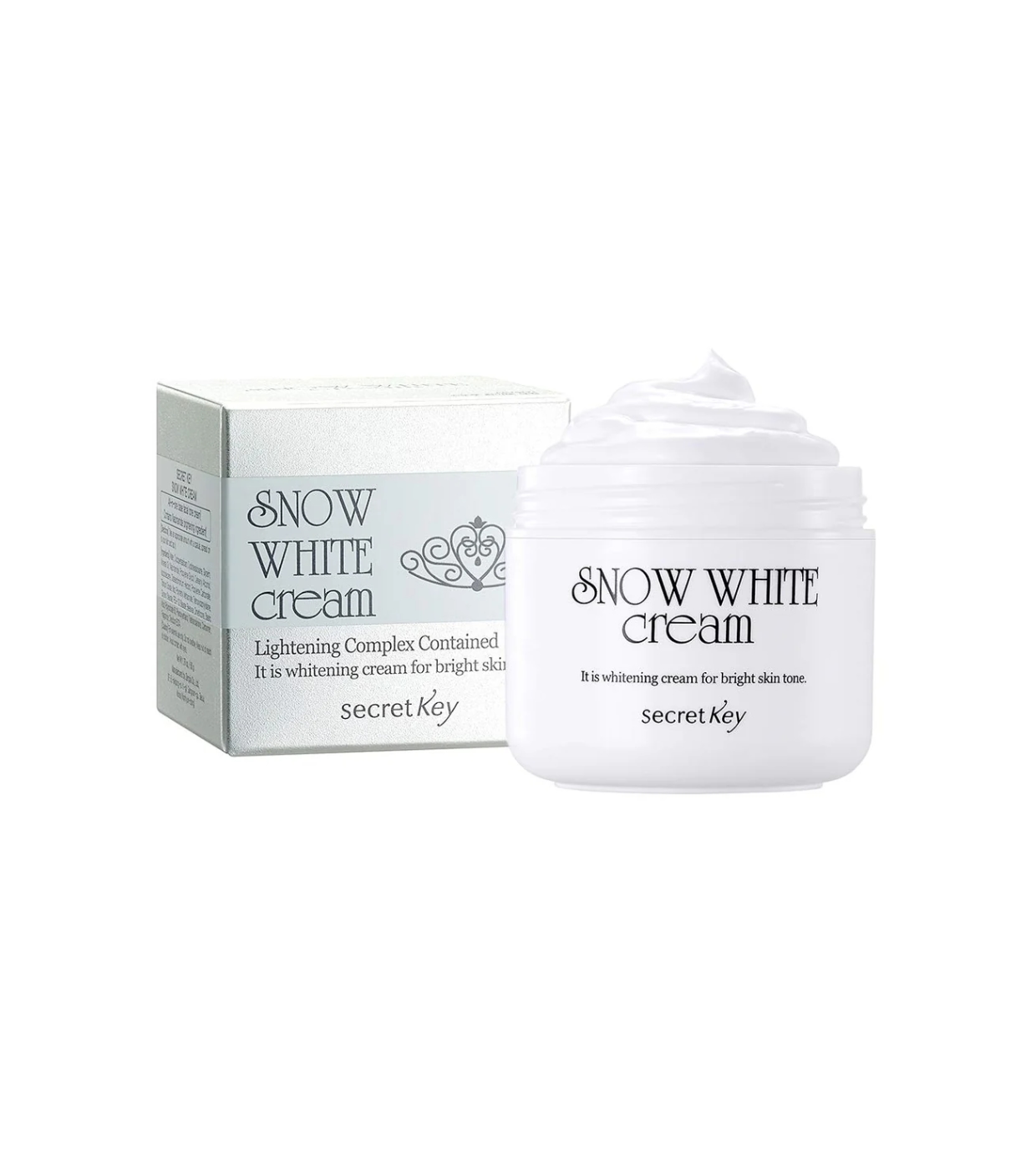 La crema iluminadora Snow White Cream de Secret Key es un tratamiento multifunción que blanquea, unifica el tono de la piel e hidrata intensamente, dejando el rostro más suave, luminoso y saludable.