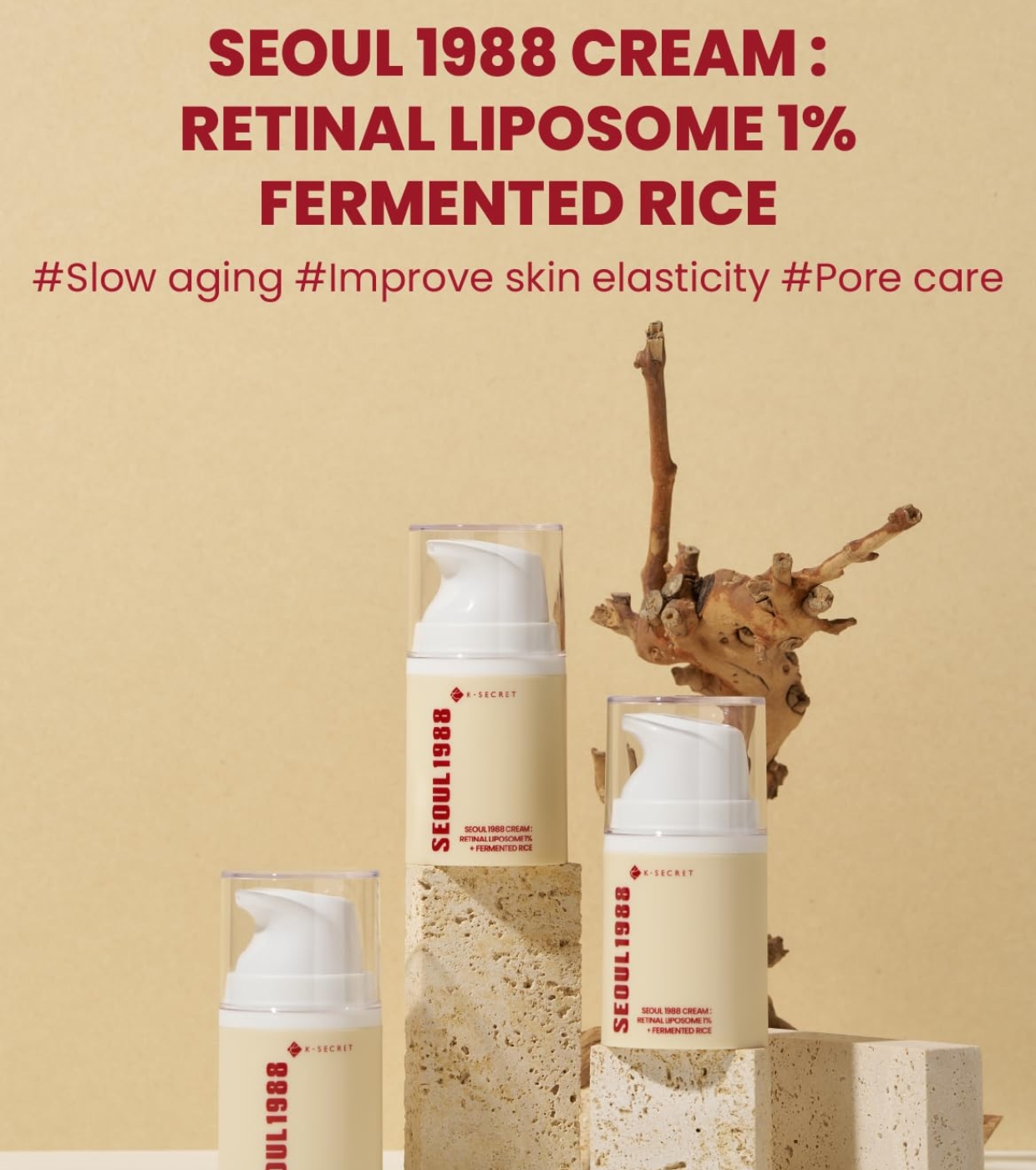 Descubre la crema Retinal Liposome 1% + Fermented Rice de K-Secret y consigue una piel más firme, luminosa y rejuvenecida.