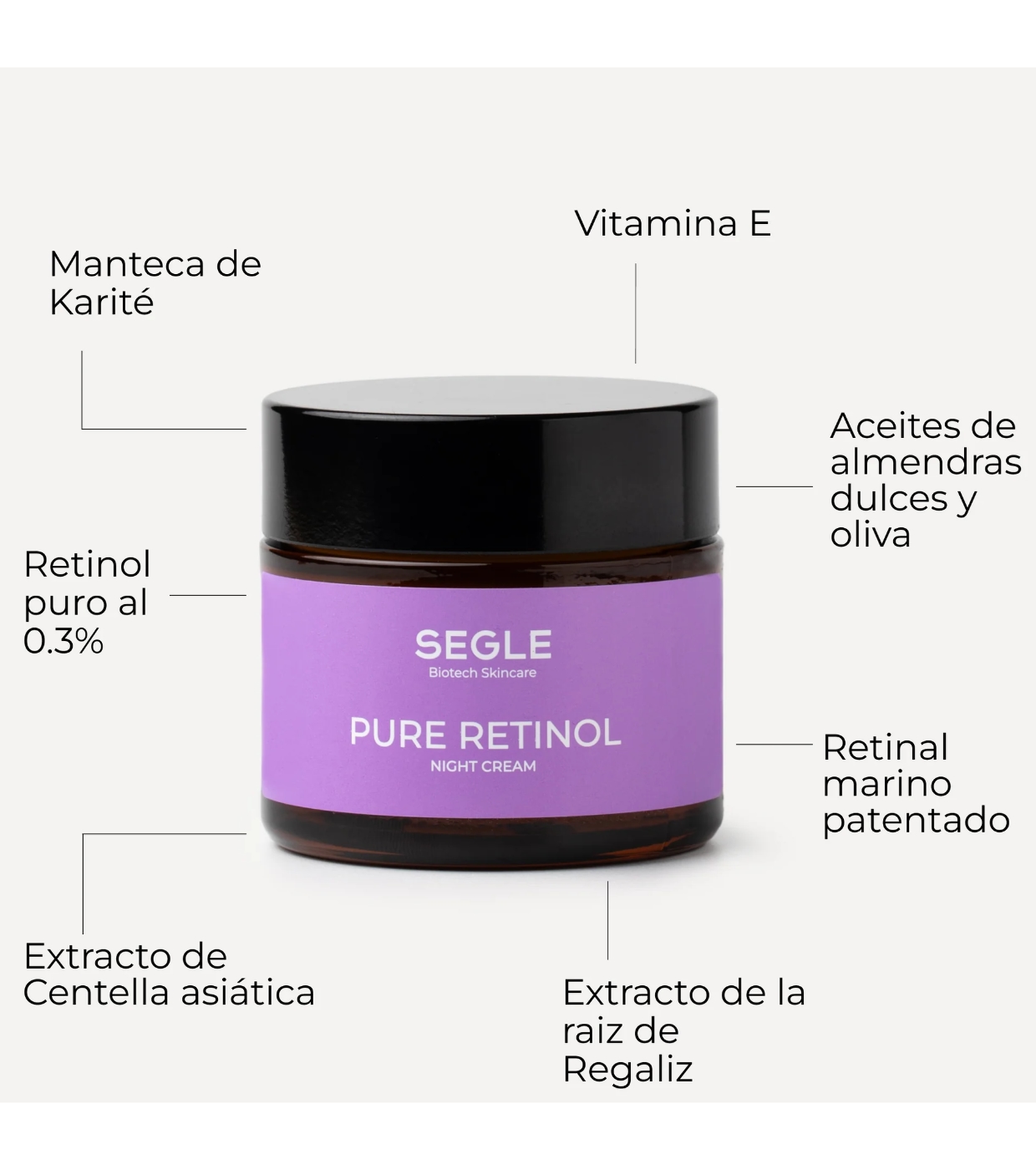 La crema facial noche antiedad Pure Retinol de SEGLE es un tratamiento nocturno avanzado diseñado para pieles maduras y/o secas.