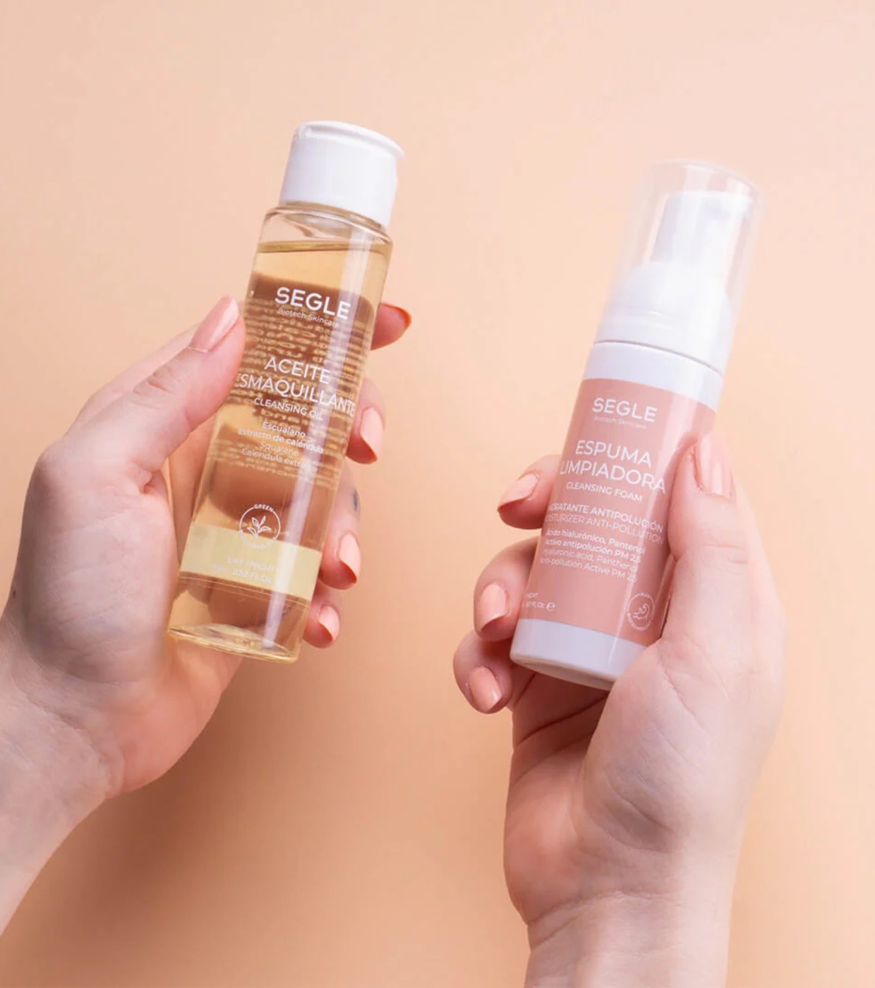 El pack doble limpieza en formato viaje de SEGLE limpia y desmaquilla la piel del rostro y ojos sin resecarla, y sin dejar una sensación tirante. Elimina restos de maquillaje, protector solar, polución, sudor, etc.