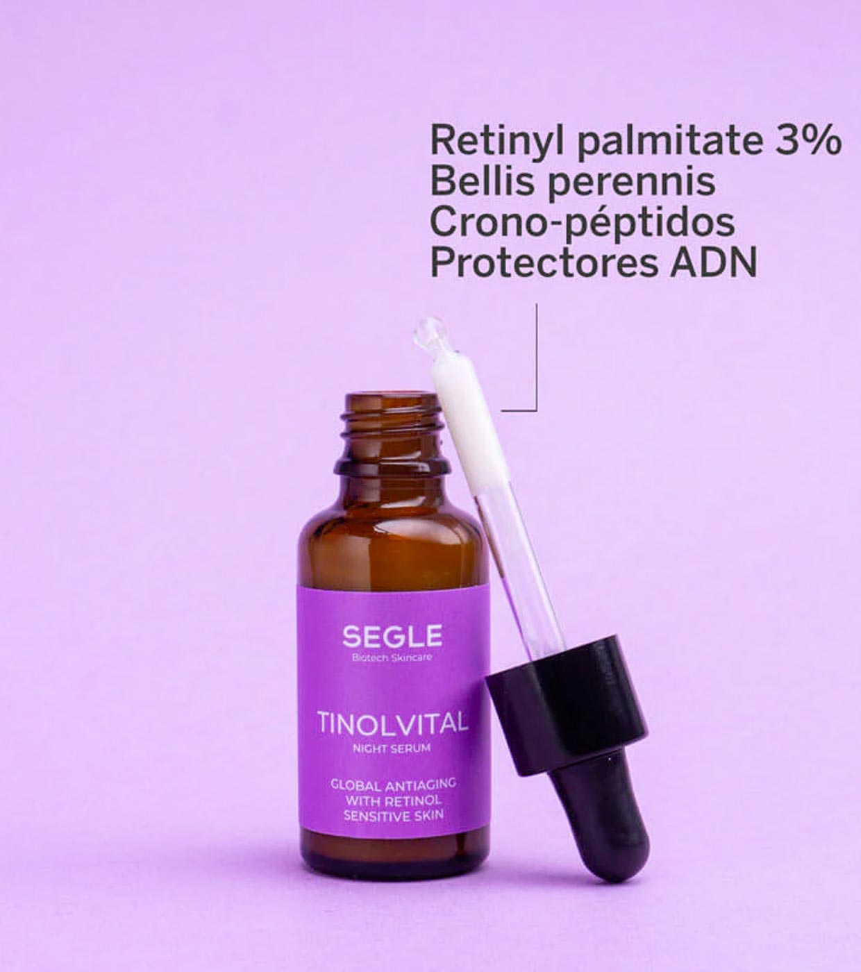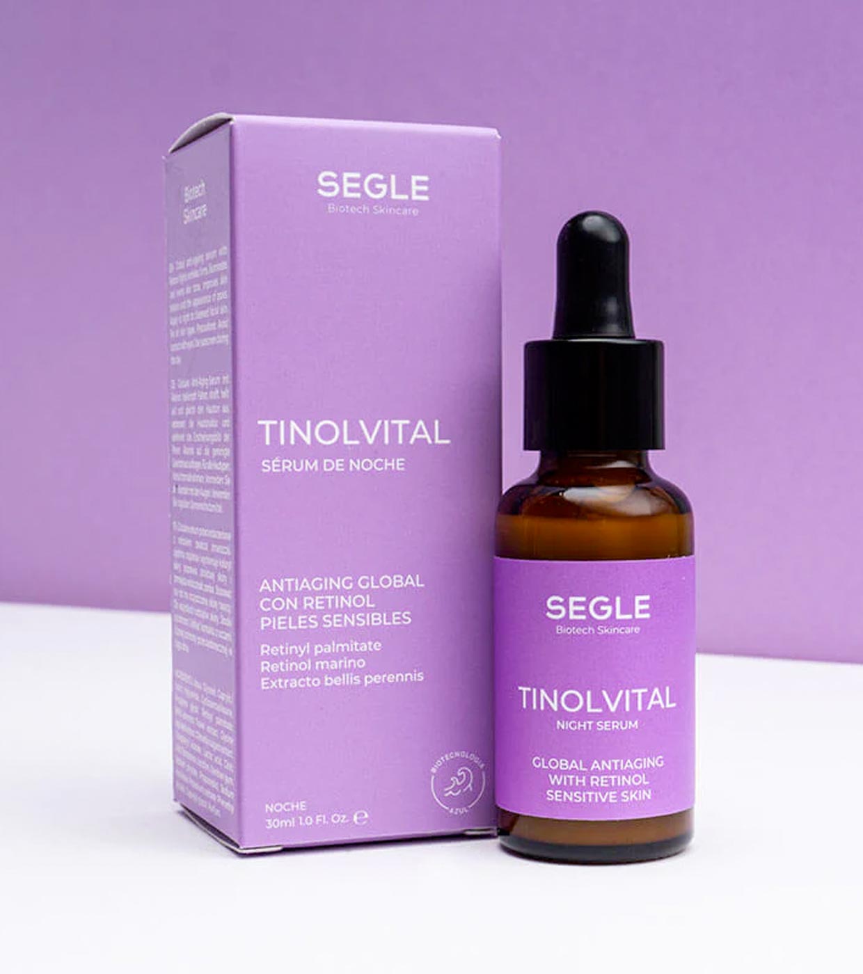 El sérum de noche atiedad Tinolvital de SEGLE se trata de un sérum de noche con retinol (retinyl palmitato al 3%) + 1% de retinol marino que combate de forma eficaz todos los signos del envejecimiento.