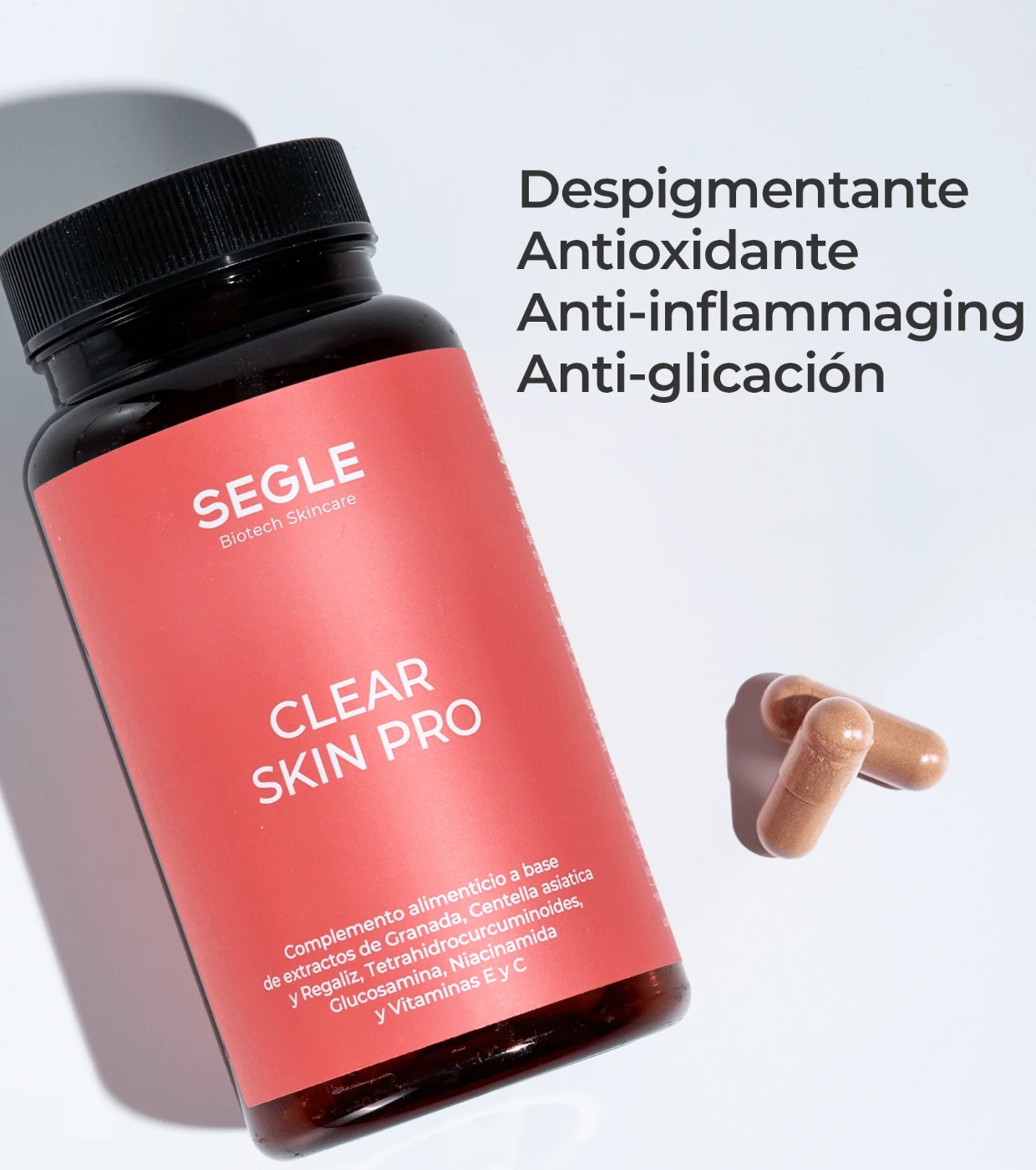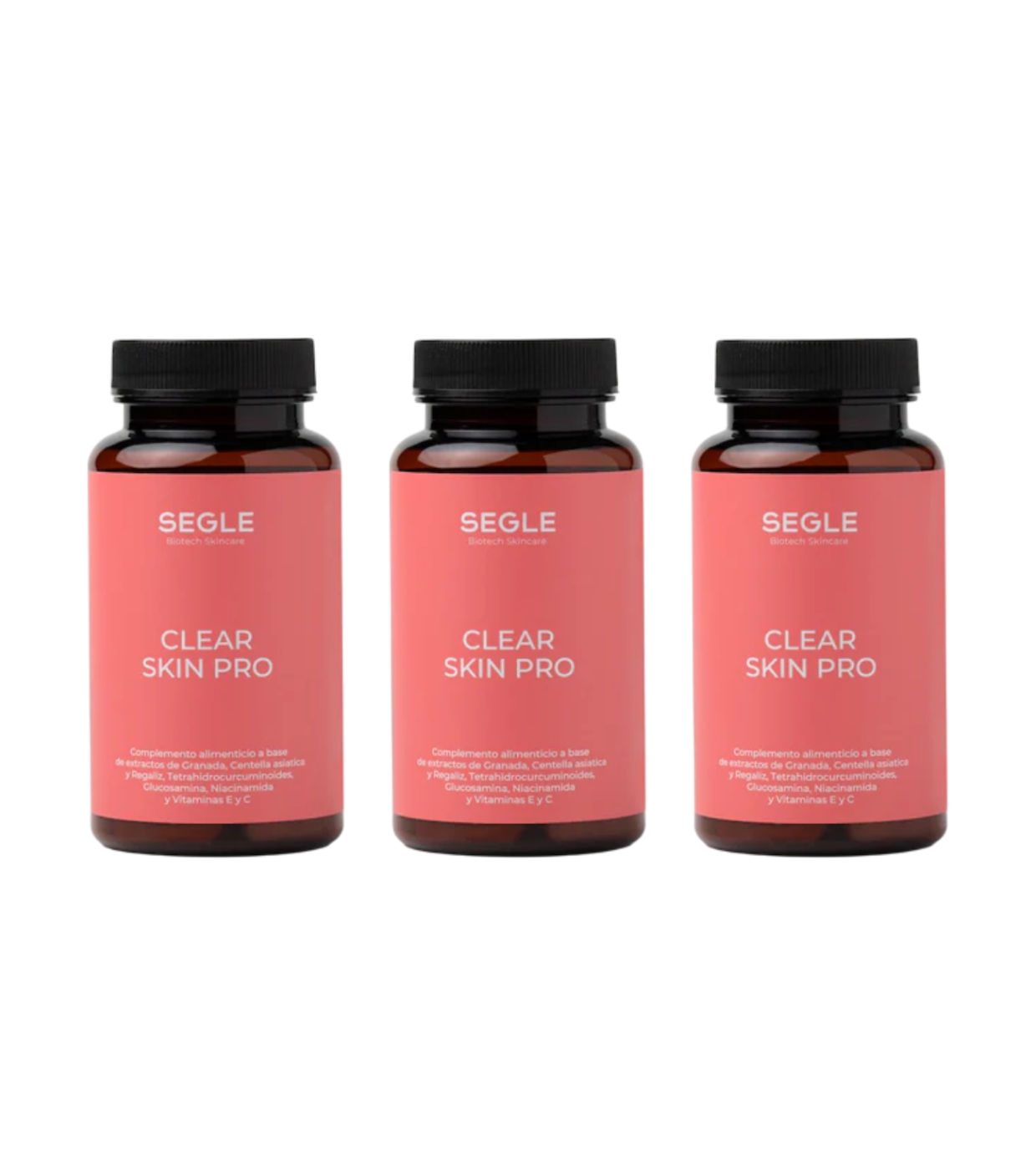 Descubre este set de 3 complementos alimenticios Clear Skin Pro de Segle despigmentante y antioxidante está formulado para mejorar la salud de la piel y las articulaciones con una acción integral antimanchas, antiaging, antioxidante y antiinflamatoria.
