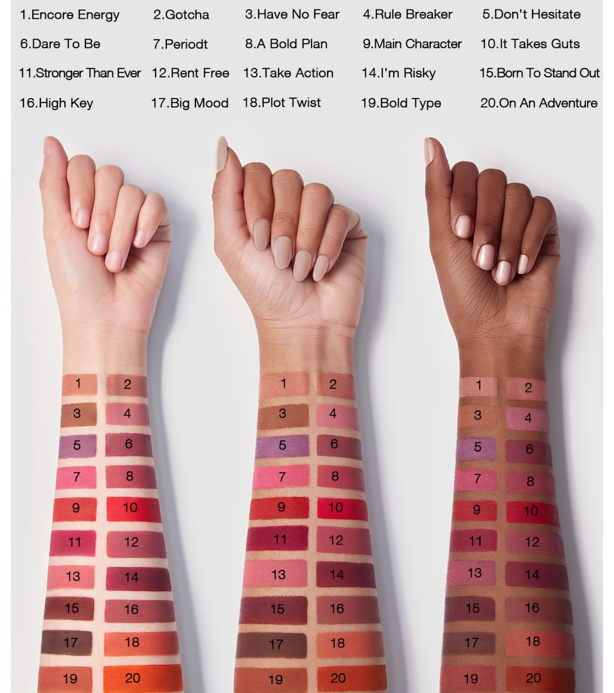 Labios definidos, vibrantes y perfectamente mates durante horas. El aliado ideal para un look elegante, atrevido y sin preocupaciones.