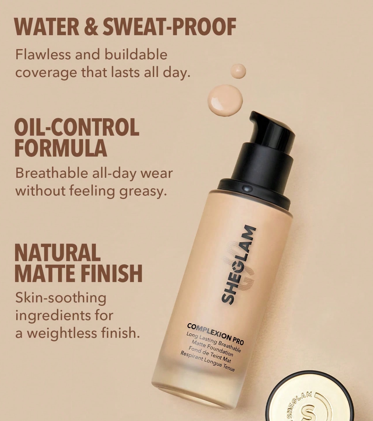 Descubre la base de maquillaje Complexion Pro de SHEGLAM, la base de maquillaje diseñada para ofrecer un acabado impecable que resiste tu ritmo diario.