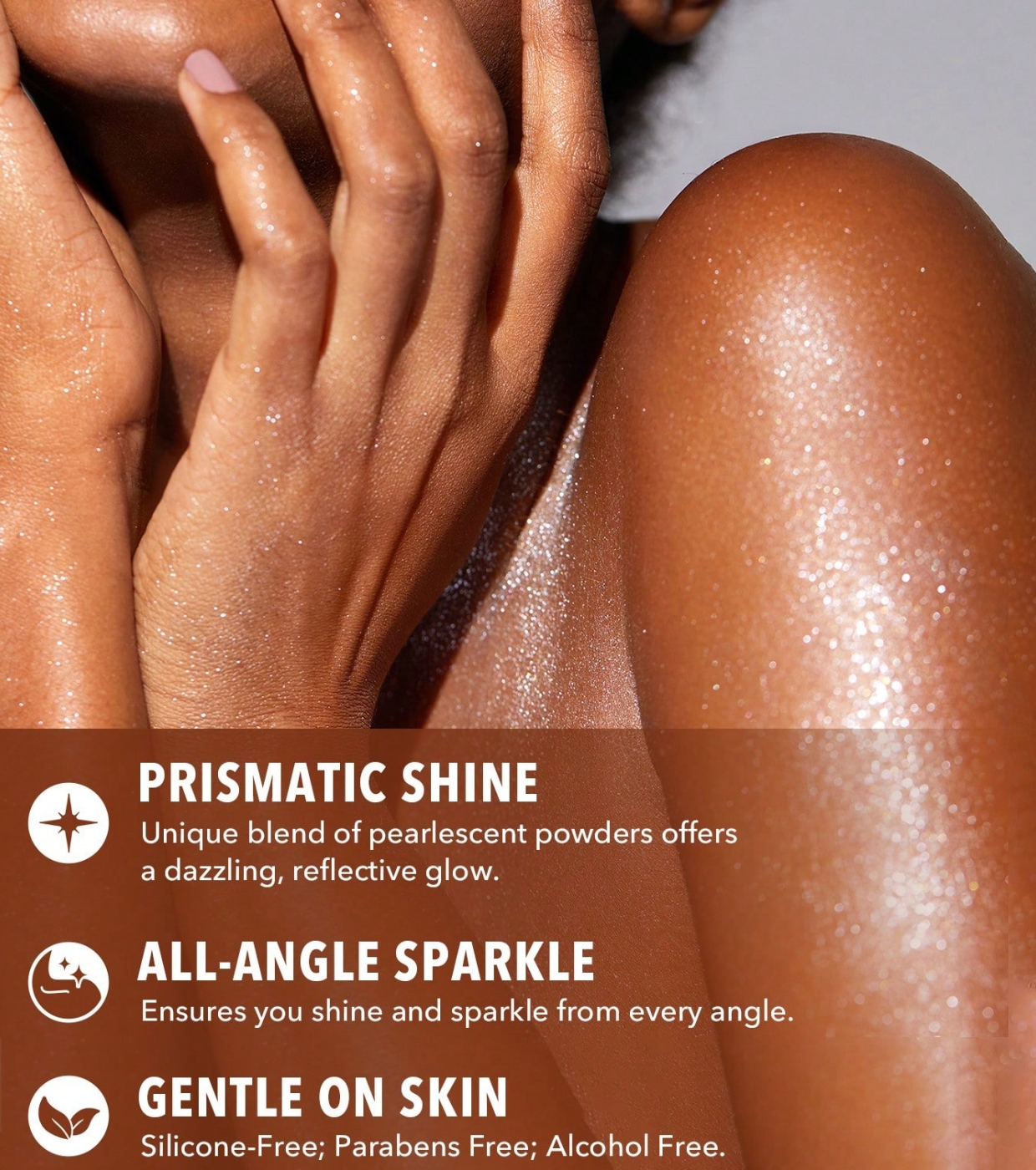Formulada con una combinación de polvos perlados de distintos tamaños, crea un efecto reflectante tipo prisma que capta la luz y deja un acabado luminoso y multidimensional.