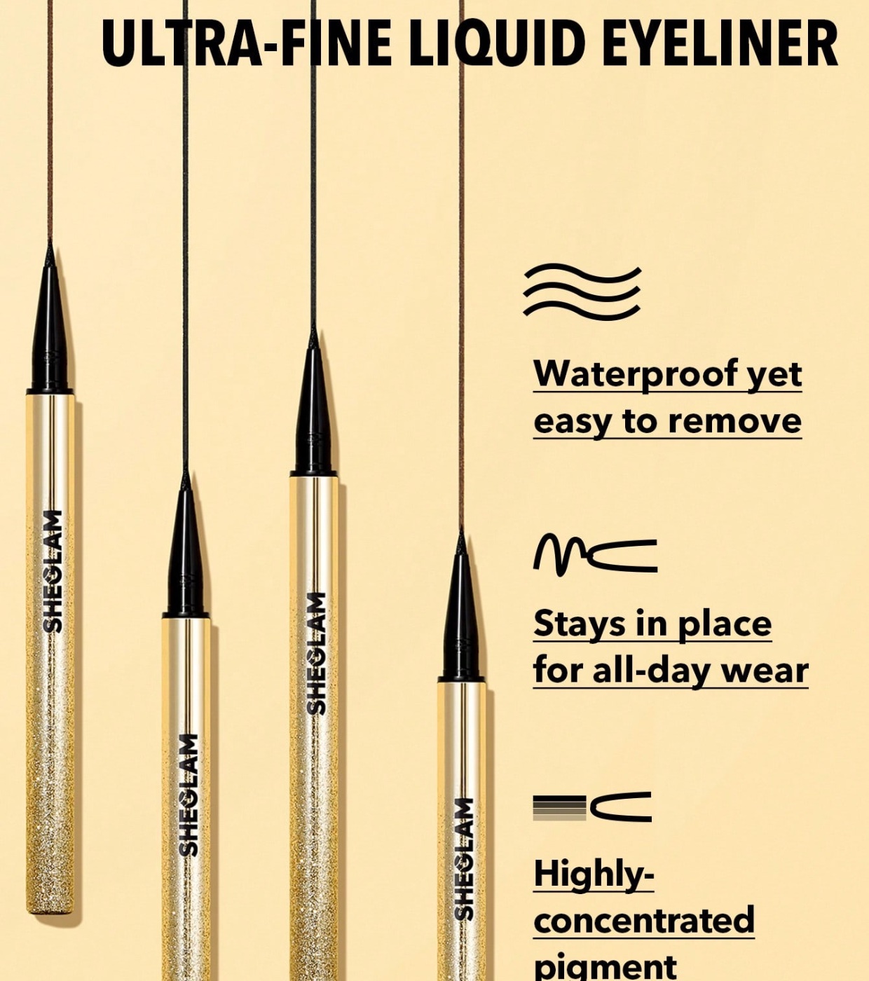 El Line & Define Waterproof Liquid Eyeliner de SHEGLAM es un superventas por una razón: su fórmula waterproof de larga duración se mantiene intacta todo el día, resistiendo manchas y transferencias sin perder intensidad.