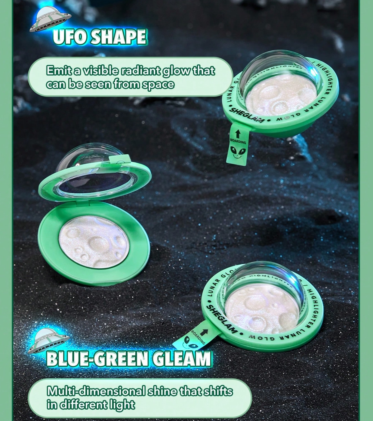 ¡Consigue un brillo que se puede ver desde el espacio exterior! Este iluminador Lunar Glow de SHEGLAM con reflejo azul verdoso ofrece un acabado único y futurista que transforma cualquier look en una auténtica declaración de estilo.