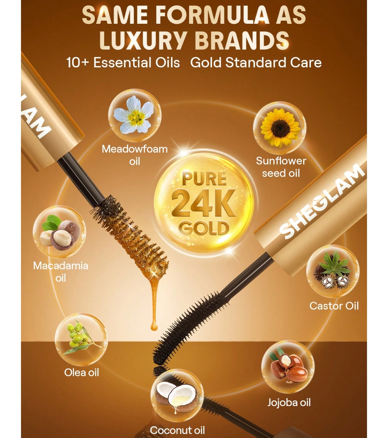 Eleva tu mirada con la máscara All in One 24K de SHEGLAM, una fórmula exclusiva enriquecida con oro auténtico de 24K y una potente combinación de ingredientes nutritivos.
