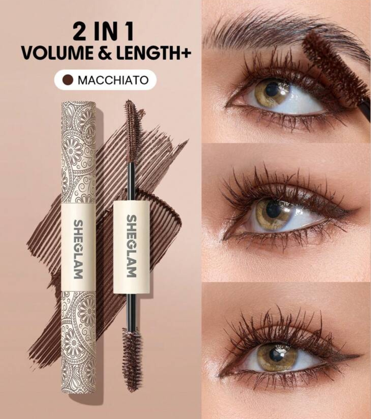 Consigue unas pestañas a medida con la máscara de pestañas All-in-One Volume & Length de SHEGLAM, una máscara innovadora con cepillo doble y dos fórmulas distintas para un resultado totalmente personalizable.