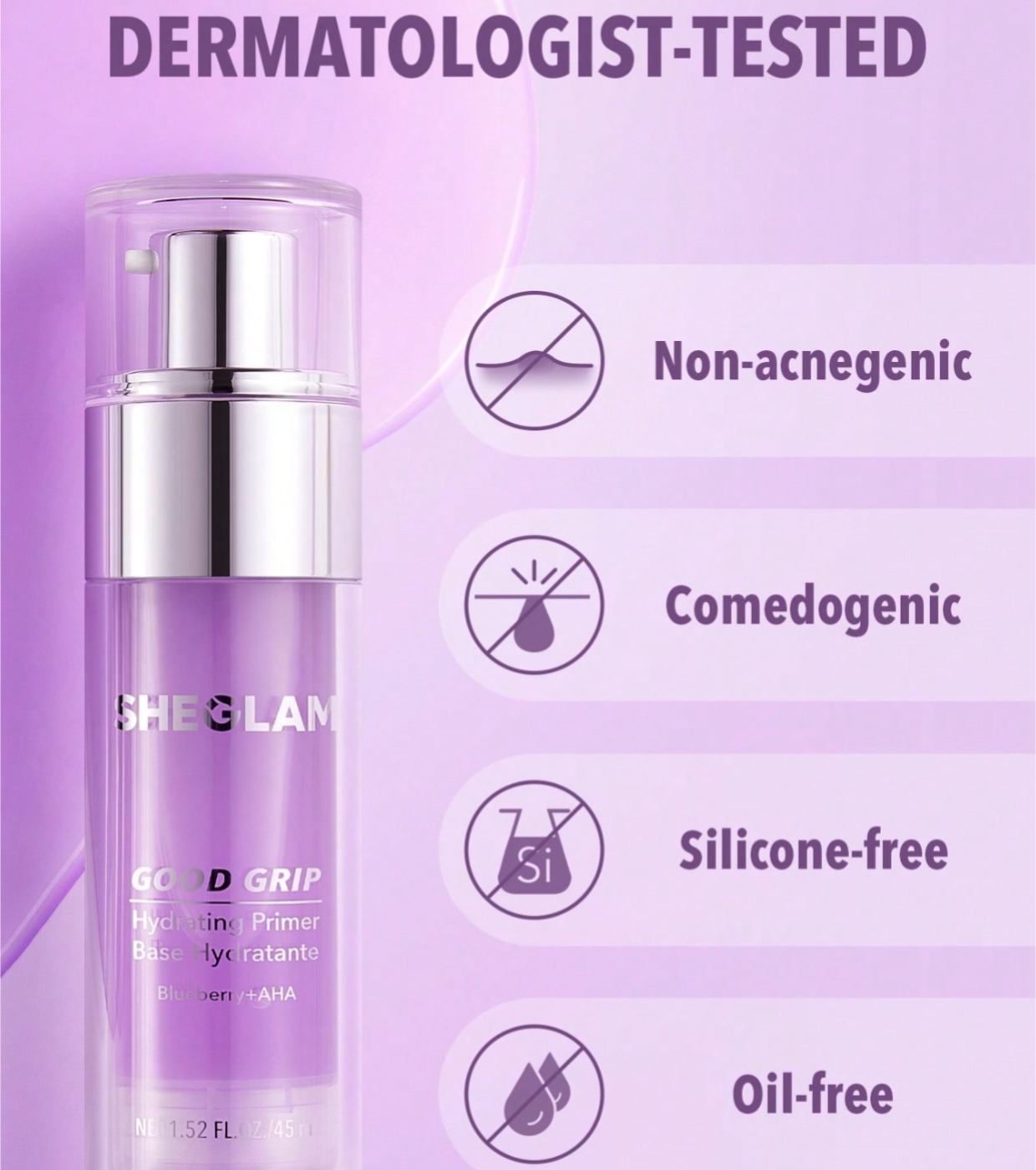 ¡Prepárate para que tu maquillaje no se mueva! Esta prebase Good Grip Blueberry + AHA de SHEGLAM con textura gel refrescante deja la piel suave, tersa e hidratada desde el primer momento.