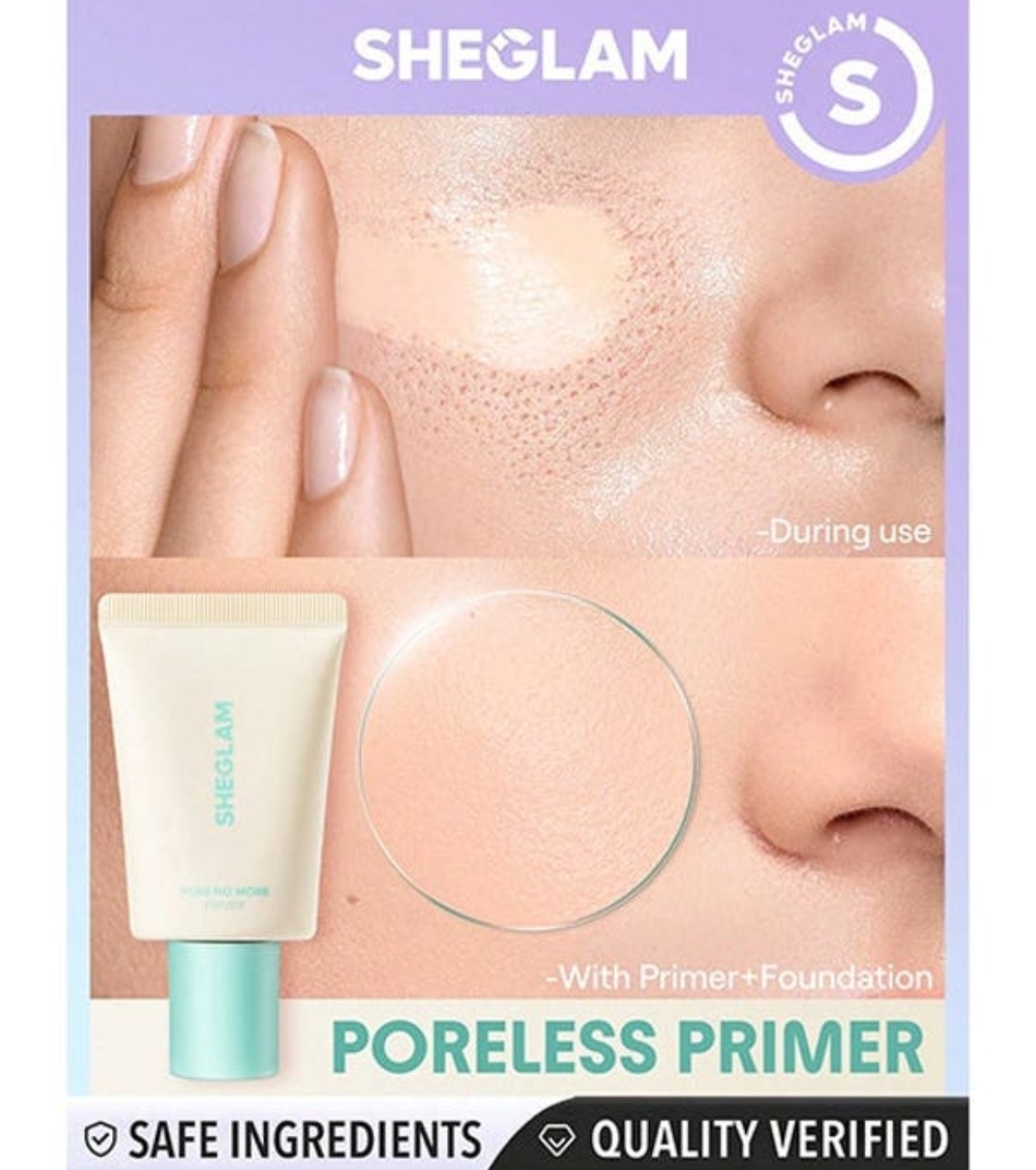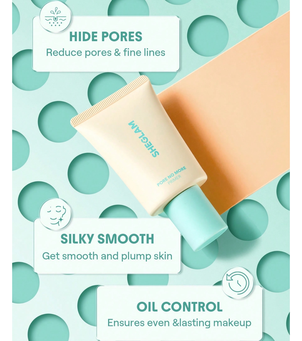 Consigue un acabado impecable con la prebase Pore No More de SHEGLAM, diseñada para minimizar la apariencia de los poros y difuminar imperfecciones al instante.