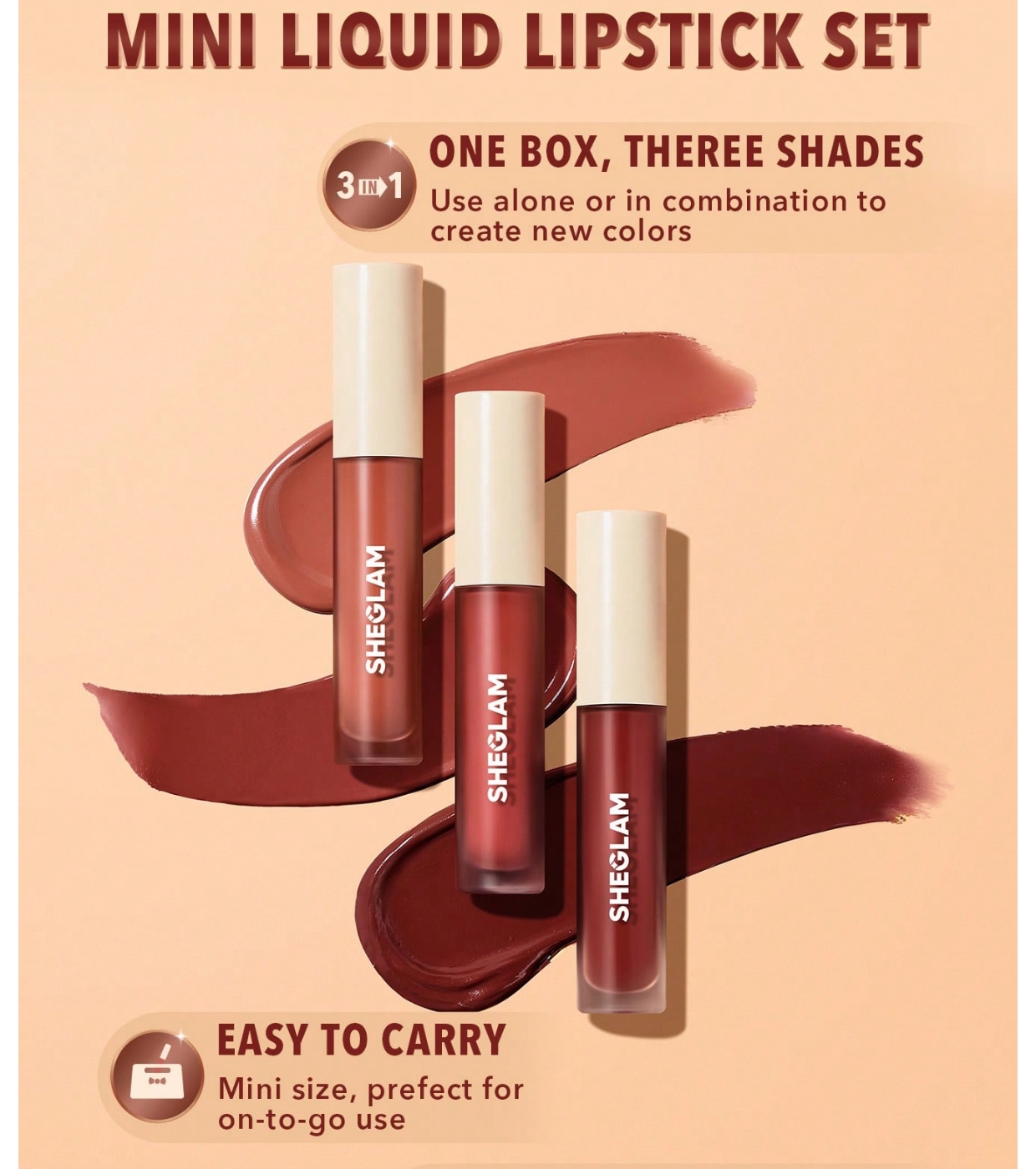El set de minilabiales líquidos Matte Allure de SHEGLAM reúne tus tonos favoritos en práctico formato mini, perfecto para llevar en el bolso o probar diferentes colores sin renunciar al acabado profesional.