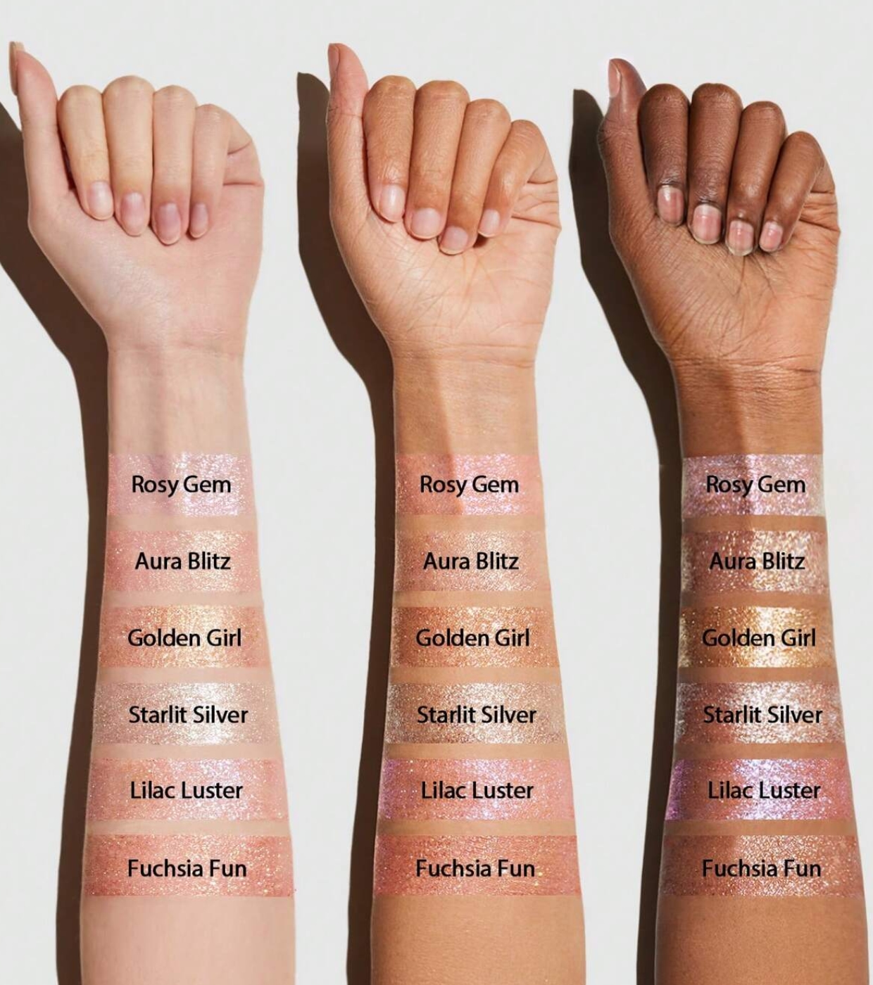 Su innovadora fórmula sólida con textura gelatinosa se funde con la piel aportando un efecto gema triturada y un brillo cristalino refrescante, como el resplandor de una galaxia sobre tu rostro.