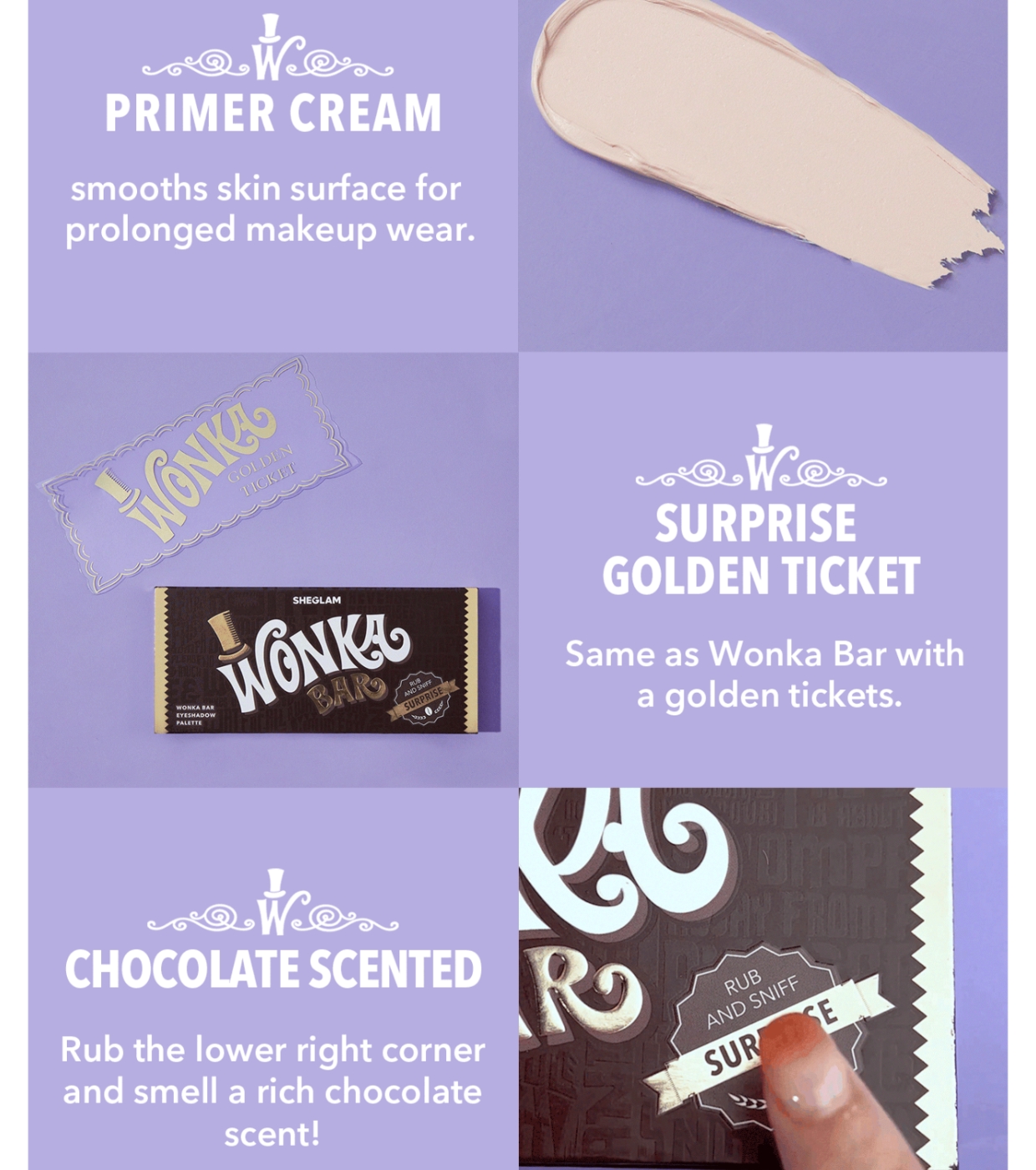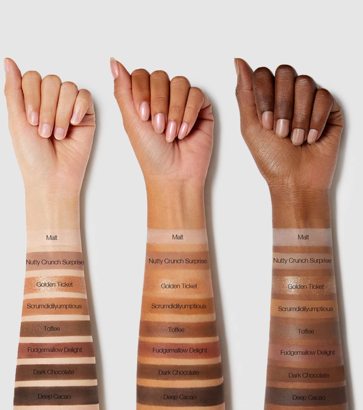 ¡Date un capricho chocolatoso! Esta paleta de sombras Wonka Bar de Sheglam combina 8 tonos deliciosos y ultrasuaves para crear looks irresistibles y llenos de calidez.