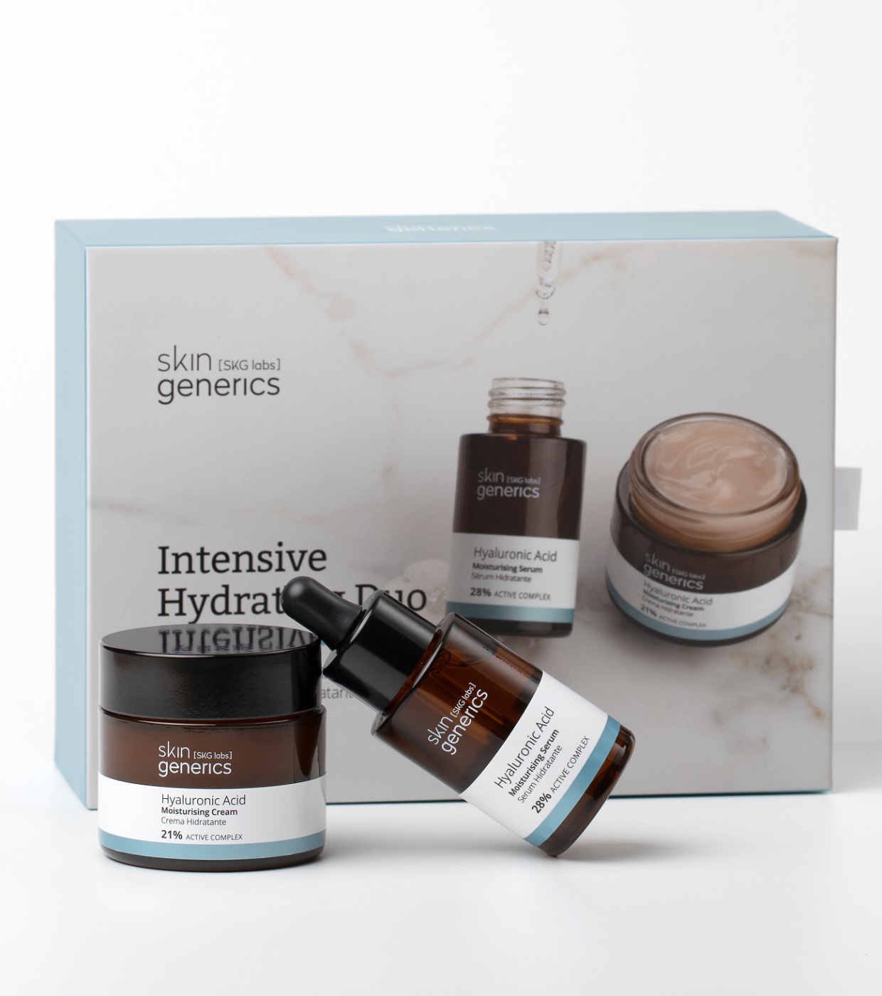 Descubre el dúo hidratación intensivo de Skin Generics, crema y sérum más hidratantes de la marca para una rutina de hidratación completa.