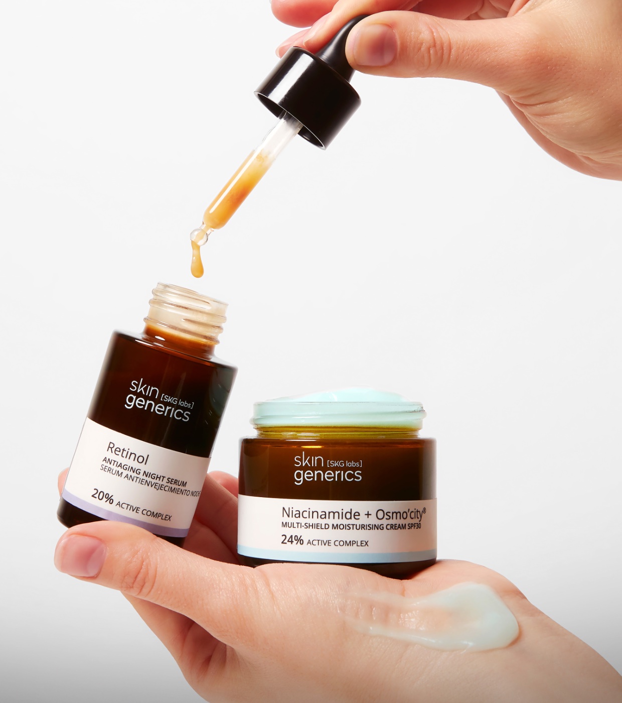 Este sérum de noche antienvejecimiento de Skin Generics concentra 20% de activos antienvejecimiento que garantizan su efectividad tras su uso continuado.
