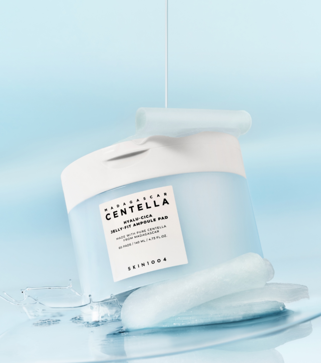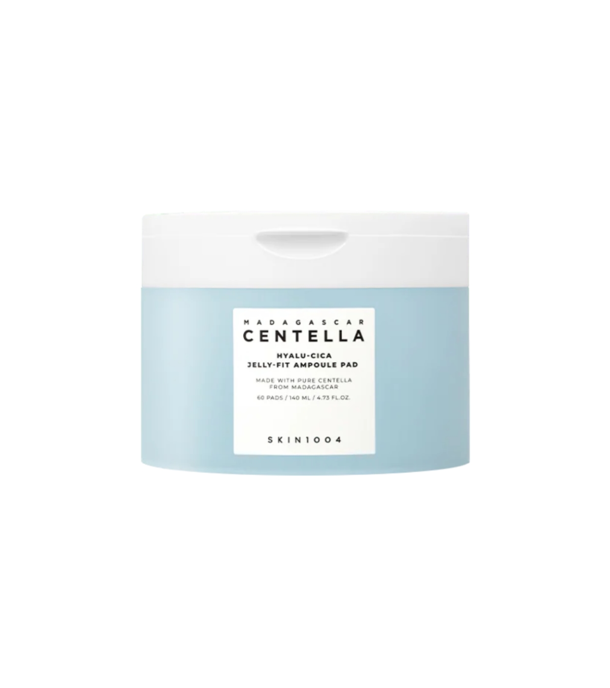 Las Jelly-Fit Ampoule Pad de la línea Hyalu-Cica de SKIN1004 son almohadillas tónicas con textura gelatinosa impregnadas en una ampolla rica en múltiples tipos de ácido hialurónico, diseñadas para hidratar, refrescar y calmar la piel al instante.