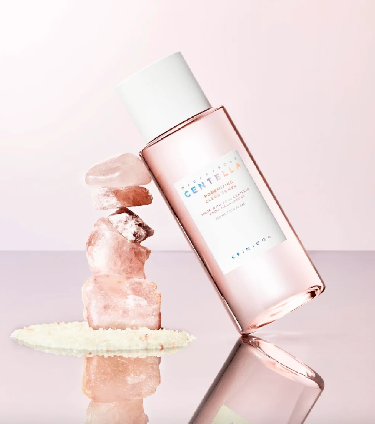 Este tónico facial Poremizing de SKIN1004 está formulado con sales minerales y un complejo de 4-HAs (AHA, BHA, PHA, LHA) que limpia suavemente los poros, elimina las células muertas de la piel y mejora la textura de la piel.