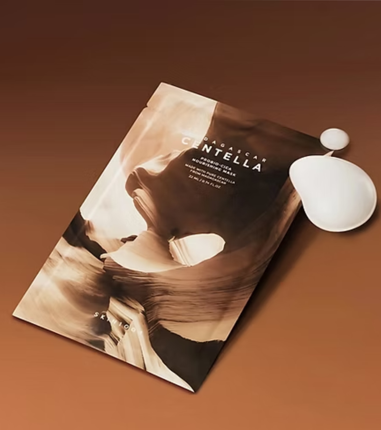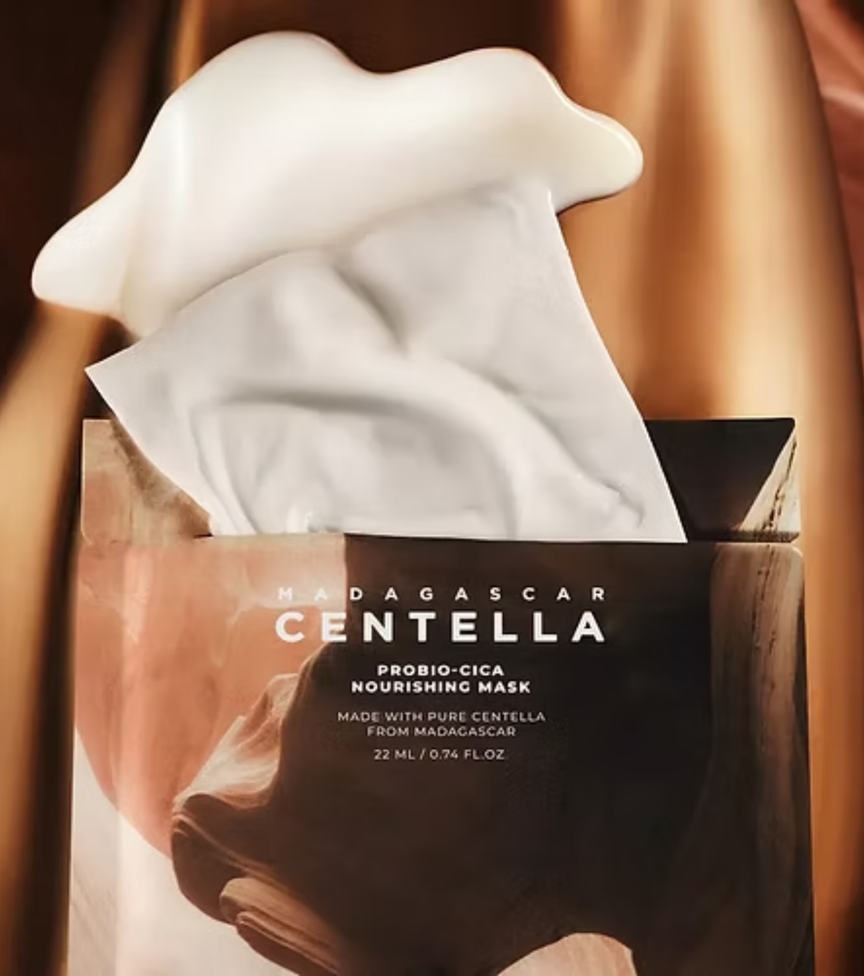 Una mascarilla en hoja impregnada con una rica esencia lechosa que combina Centella Asiática fermentada de Madagascar, 9 péptidos, ceramidas y probióticos para una nutrición intensiva y una reparación visible desde el primer uso.