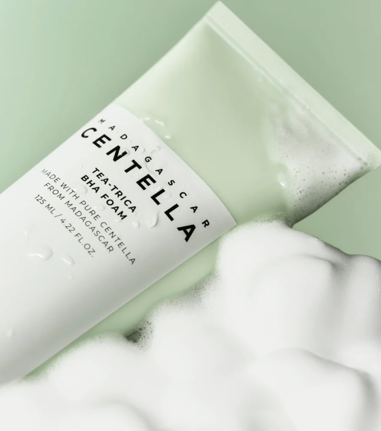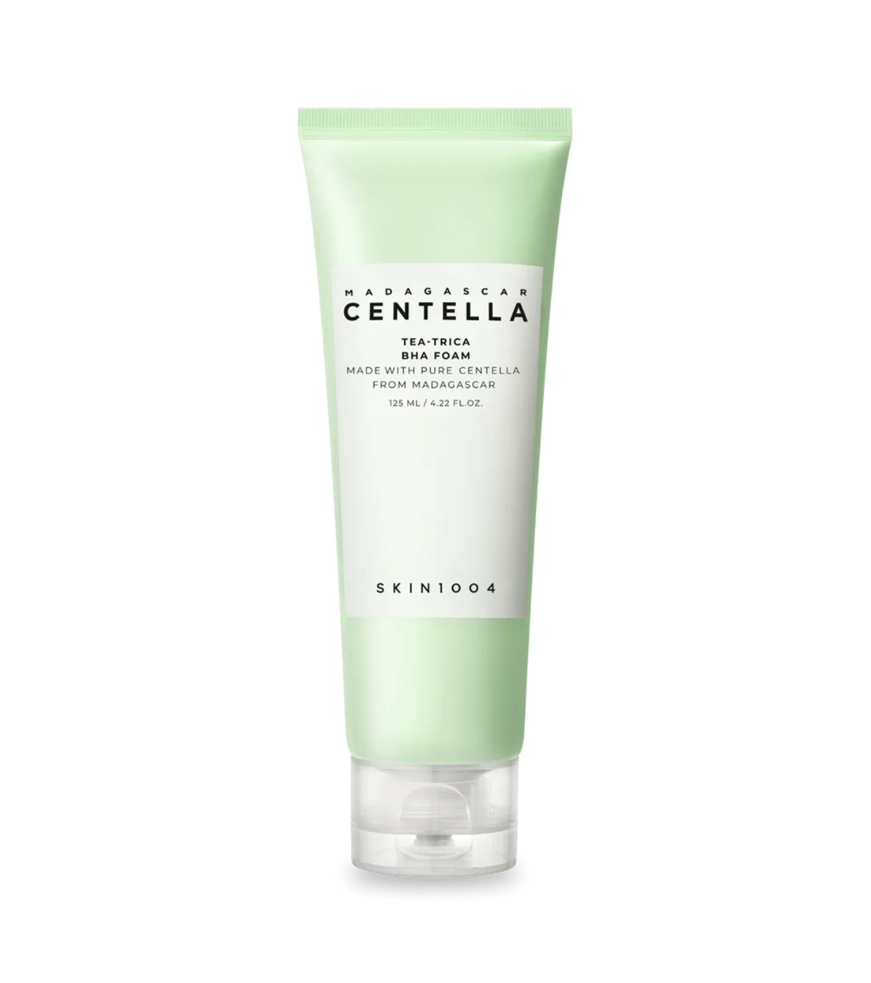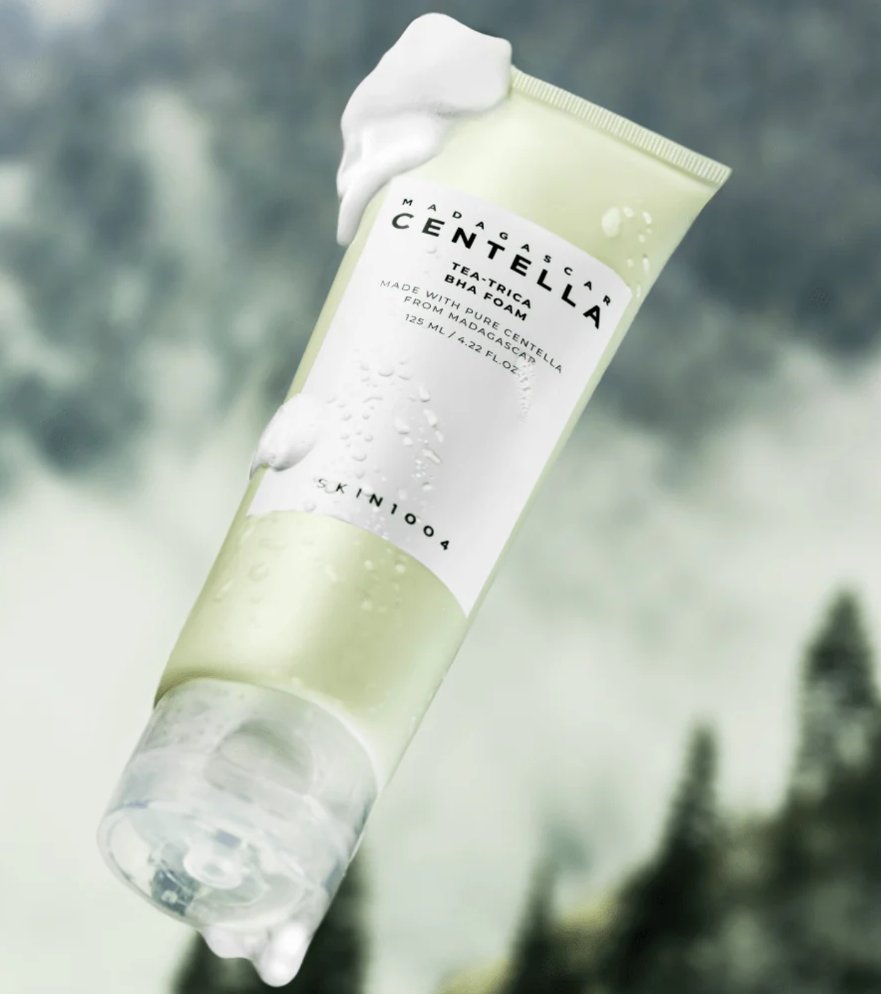 Descubre esta espuma limpiadora con Centella Asiática de Madagascar de SKIN1004 formulada con BHA y árbol de té, diseñada para desobstruir los poros y exfoliar suavemente las células muertas de la piel.