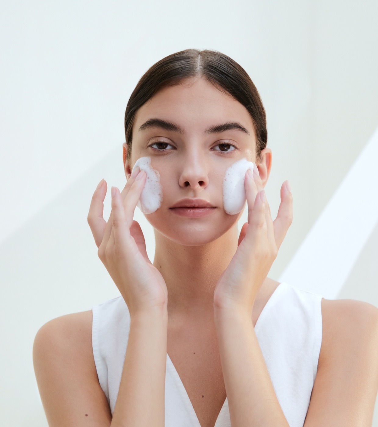 Su espuma ligera y refrescante limpia sin resecar, ayudando a recuperar el resplandor natural del rostro.