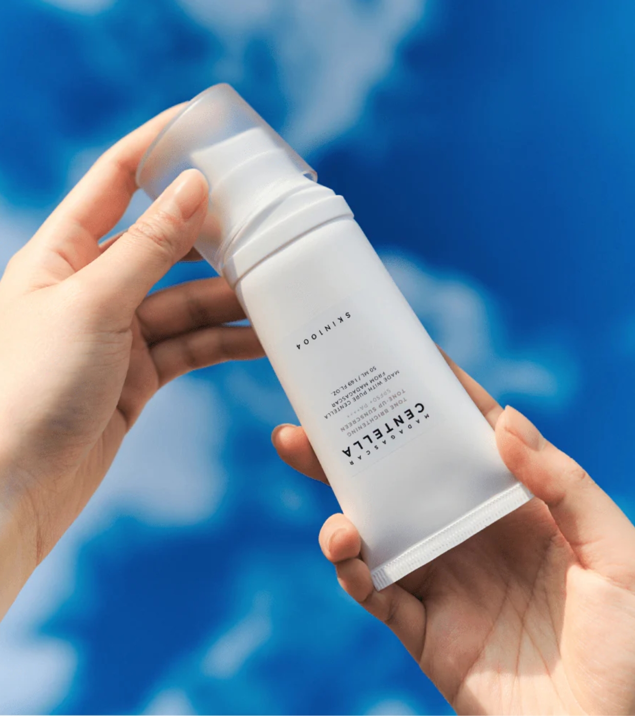 Este protector solar facial Tone-Up SPF50+ PA++++ de SKIN1004 es un protector solar ligero con color melocotón, formulado con Madewhite™, que corrige el tono desigual de la piel y ofrece un acabado natural.