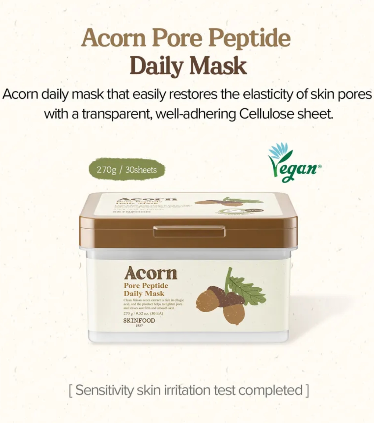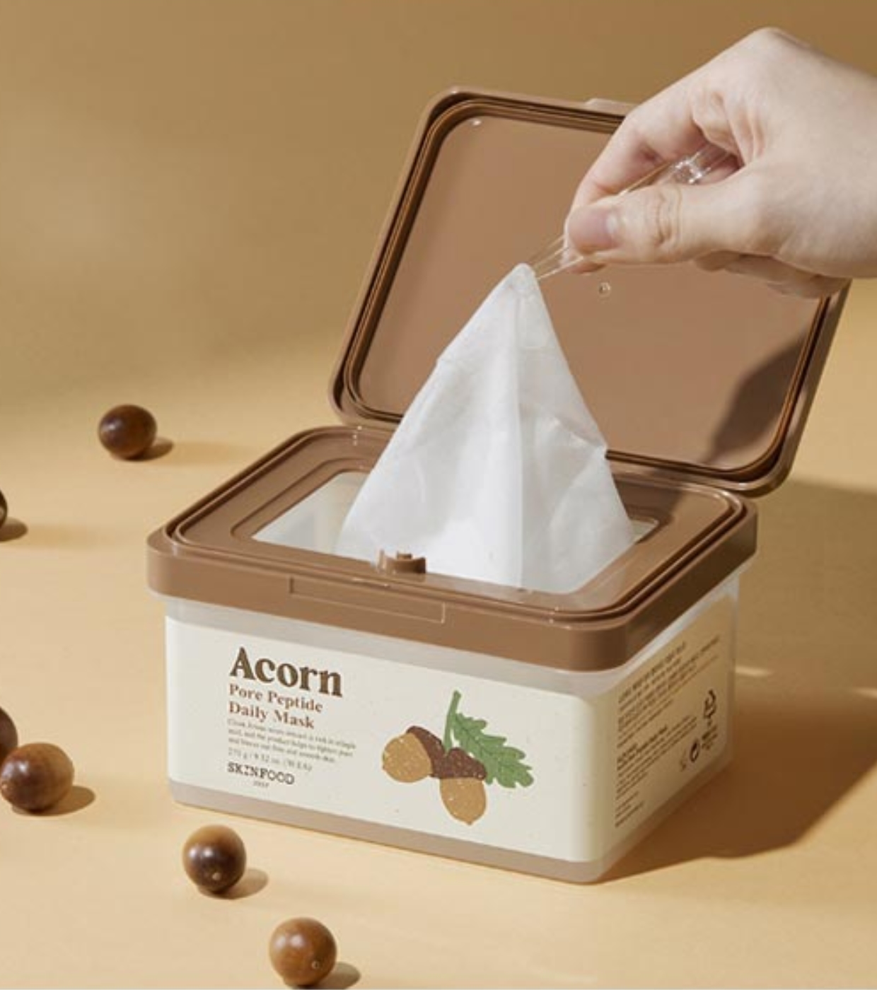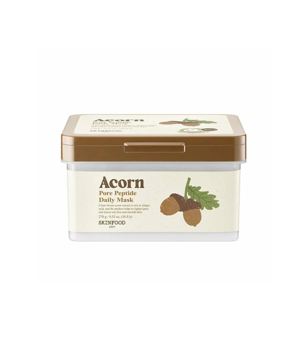 La mascarilla facial diaria Acorn Pore Peptide de Skinfood ayudan a minimizar la apariencia de los poros, mejorar la elasticidad de la piel y controlar el exceso de sebo.
