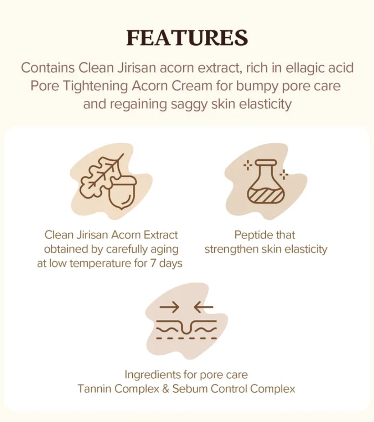 - Con bellota (astringente natural) para purificar los poros.