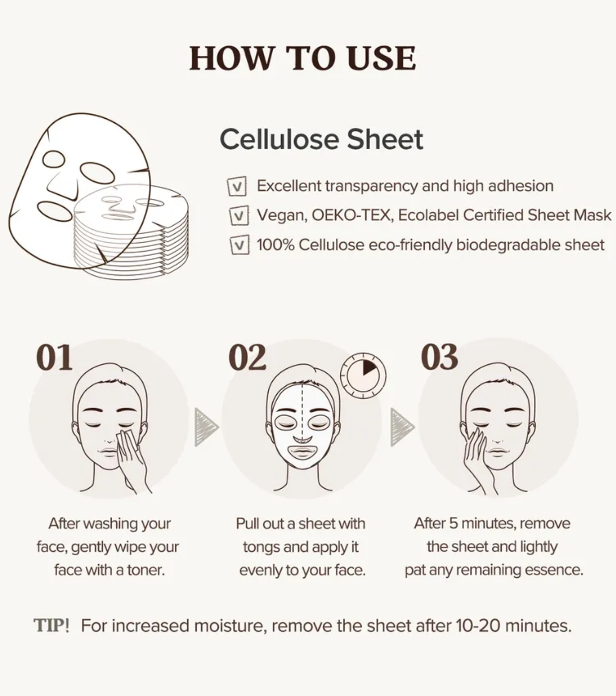 Después de la limpieza, aplica una capa uniforme sobre el rostro seco, evitando el área de los ojos y labios.