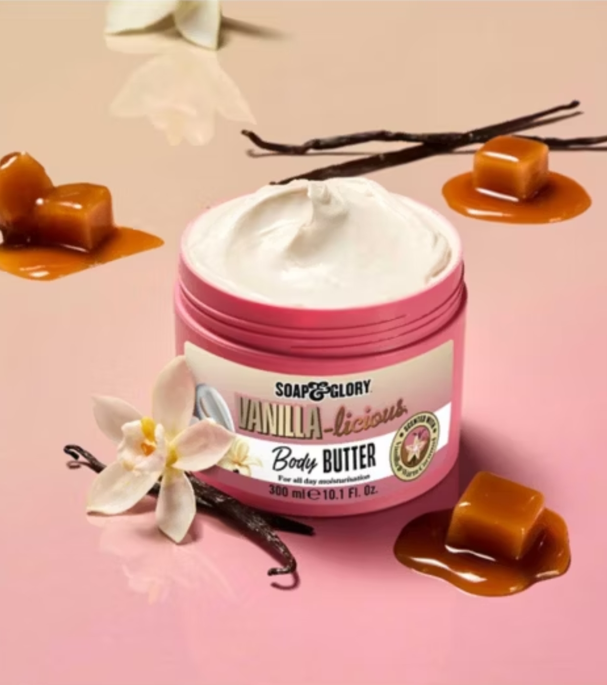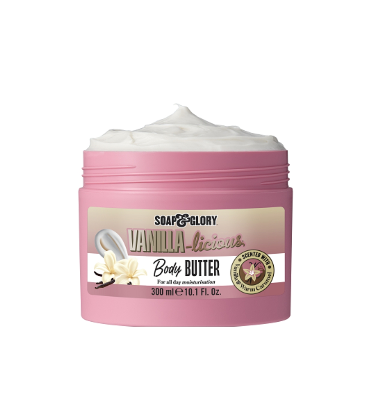 Nutre intensamente tu piel con la manteca corporal Vanilla Licious de Soap & Glory, una manteca corporal rica y cremosa que envuelve tu piel en un irresistible aroma a vainilla cálida.