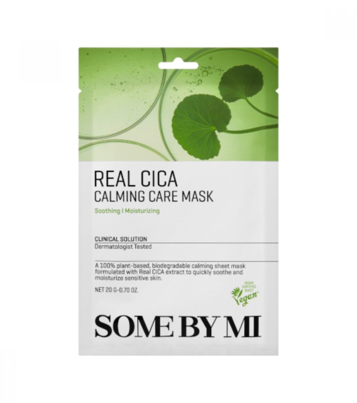 Mascarilla facial vegana formulada con extracto de centella asiática que aporta un tratamiento calmante a las pieles irritadas.