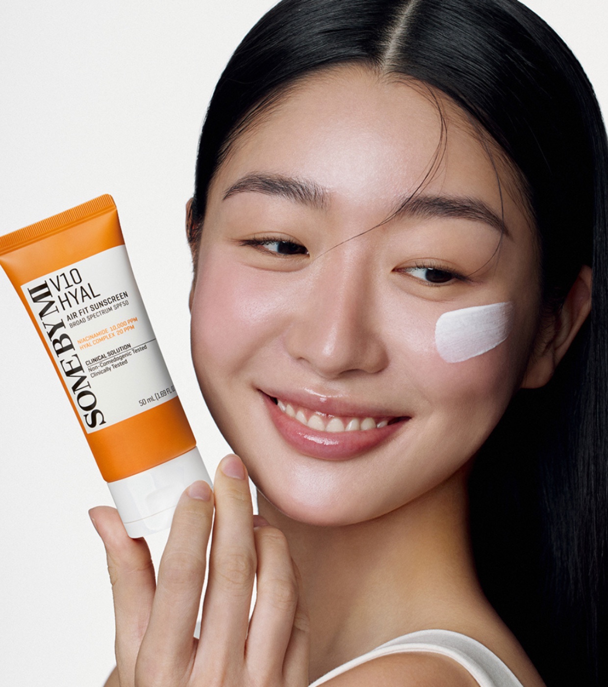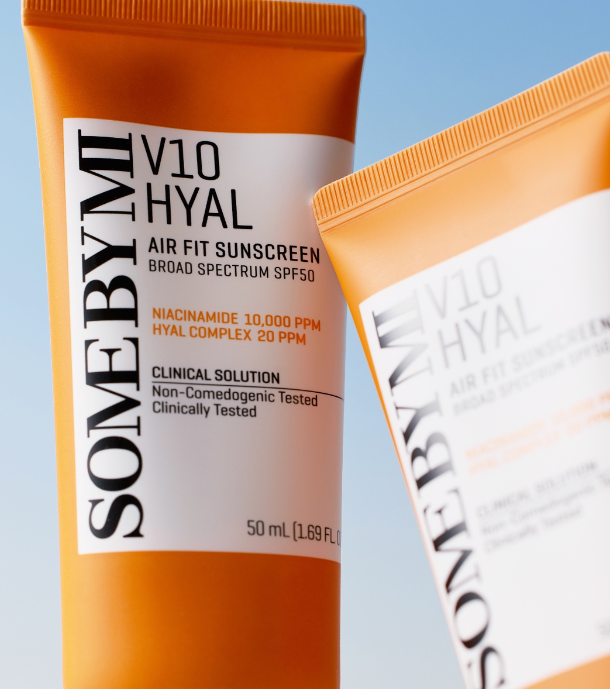 El protector solar facial V10 Hyal Air Fit SPF50+ de Some by mi ofrece una protección de amplio espectro contra los rayos UVA y UVB, ayudando a prevenir el fotoenvejecimiento y la hiperpigmentación.